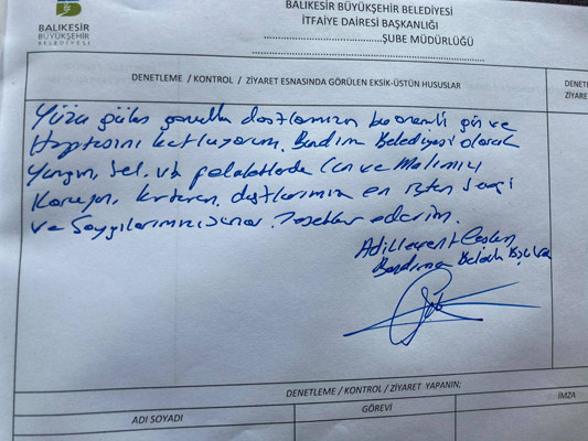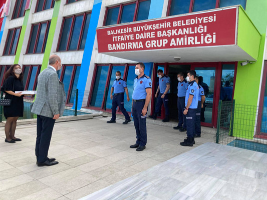BAŞKAN VEKİLİ İTFAİYECİLERİN HAFTASINI KUTLADI   Belediye Başkan Vekili Adil Levent Coşkun İtfaiye Haftası sebebiyle Balıkesir Büyükşehir Belediyesi İtfaiye Daire Başkanlığı Bandırma Grup Amirliğini ziyaret ederek İtfaiyecilere baklava ikramında bulundu. İtfaiyecilerde Başkan Vekili Adil Levent Coşkun’a yangın tüpü hediye etti.   Başkan Vekili Adil Levent Coşkun İtfaiyeciler ile karşılıklı sohbet ettikten sonra onların haftasını kutladı ve İtfaiyecilerin ihtiyaç sahibi insanların her zaman yanında olduğunu söyleyerek görevlerinde başarılar diledi.   Belediye Başkan Vekili Adil Levent Coşkun İtfaiye hatıra defterine: “Yüzü gülen güzel dostlarımızın bu önemli gün ve haftalarını kutluyorum. Bandırma Belediyesi olarak yangın, sel vb. felaketlerde can ve malımızı koruyan kurtaran dostlarımız en içten sevgi ve saygılarımızı sunar. Teşekkür ederim” notunu düştü.