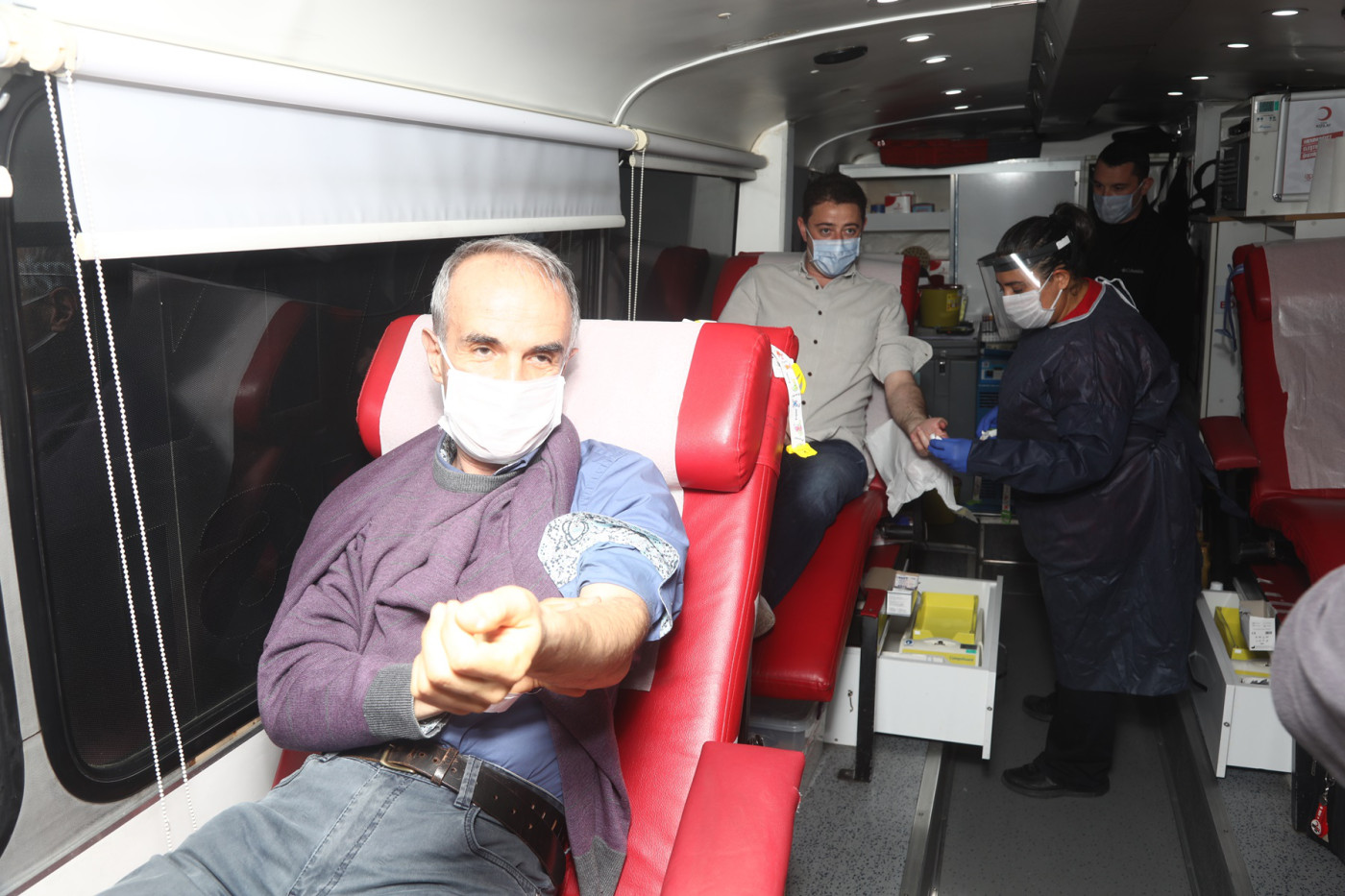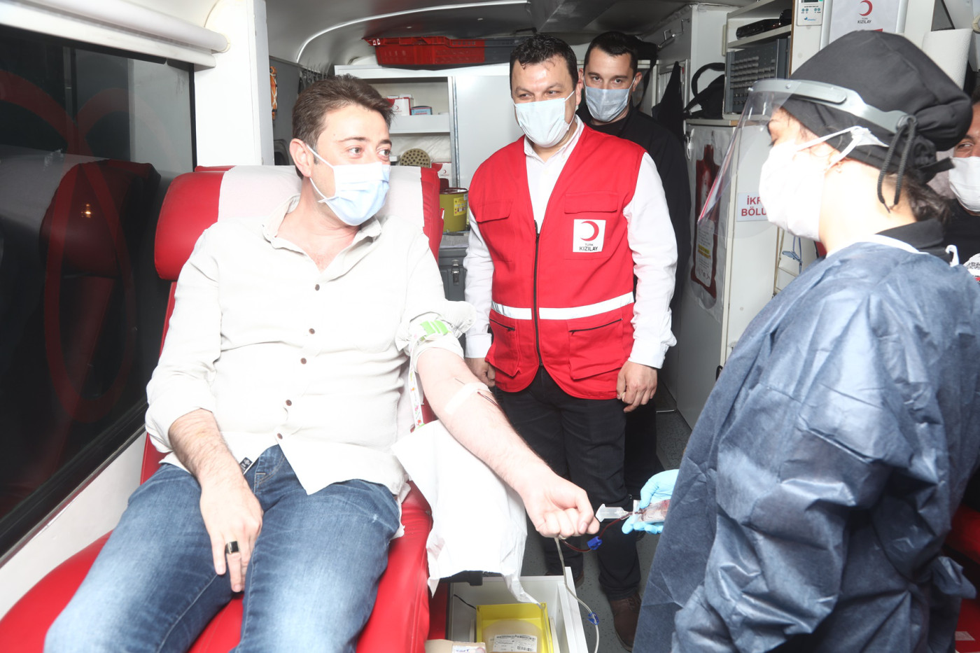 Belediye Başkanı Av. Tolga Tosun, örnek bir davranış sergileyerek kan bağışında bulundu. Kızılay tarafından Cumhuriyet Meydanında düzenlenen “Kan Bağışı Hayat Kurtarır” kampanyasına destek vermek amacıyla kan bağışında bulunan Başkan Tolga Tosun, bu kampanyaların salgın döneminde daha da önemli hale geldiğini belirterek tüm vatandaşlarımızı kan bağışına davet etti. Kampanyanın ilk gecesinde Başkan Tolga Tosun ile birlikte Bandırma Kaymakamı Günhan Yazar ve Belediye Meclis Üyesi Adem Yılmaz da yer alarak kan bağışına destek verdi. Kızılay tarafından ilk olarak 4-5-6 Mayıs tarihlerinde düzenlenen kan bağışı kampanyasının vatandaşlarımızdan gelen yoğun talep nedeniyle 11-12-13 Mayıs tarihlerinde tekrar düzenlendiğini ifade eden Başkan Tolga Tosun, Kovid-19 ve ramazan ayı nedeniyle azalan kan bağışlarının bu tür kampanyalarla ülkemizin kan stoklarının tekrar dolması adına önemli olduğunu söyledi. Unutmayın; kan Bağışı Hayat Kurtarır. Öte yandan kan bağışında bulunmak isteyen vatandaşlarımız, 11-12-13 Mayıs tarihlerinde 18:00 ile 24:00 saatleri arasında Cumhuriyet Meydanında yer alan Kızılay Kan Bağışı Merkezine gelerek kan bağışında bulunabilirler. Unutmayın; Kan Bağışı Hayat Kurtarır.