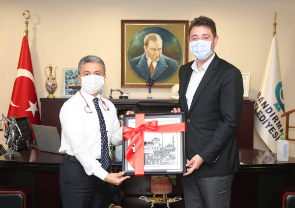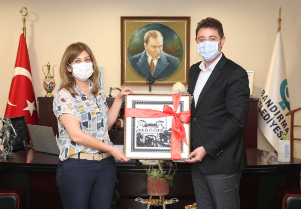 BAŞSAVCI VE AĞIR CEZA HAKİMİNDEN BAŞKAN TOLGA TOSUN’A VEDA ZİYARETİ   Niğde Cumhuriyet Başsavcısı olarak atanan Bandırma Cumhuriyet Başsavcımız Önder Yeniçeri ve Diyarbakır Bölge Adliye Mahkemesi Daire Başkanlığına atanan Bandırma Ağır Ceza Mahkemesi ve Bandırma Adli Yargı Adalet Komisyonu Başkanı Kadriye İlhan veda etmek için Belediye Başkanı Av. Tolga Tosun’a ziyaret gerçekleştirdiler.   Ziyaretle ilgili konuşan Belediye Başkanı Av. Tolga Tosun: “Kentimize verdikleri hizmetlerden dolayı Bandırmalılar adına teşekkür edip, Bandırma’mızı hatırlatacak tabloyu hediye ettik. Yeni görev yerlerinde de başarılar diledik” dedi.