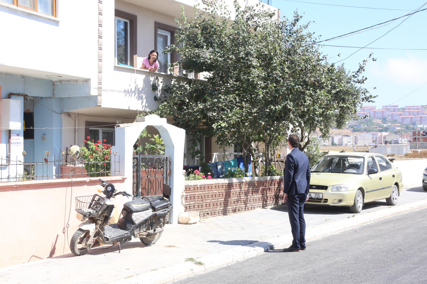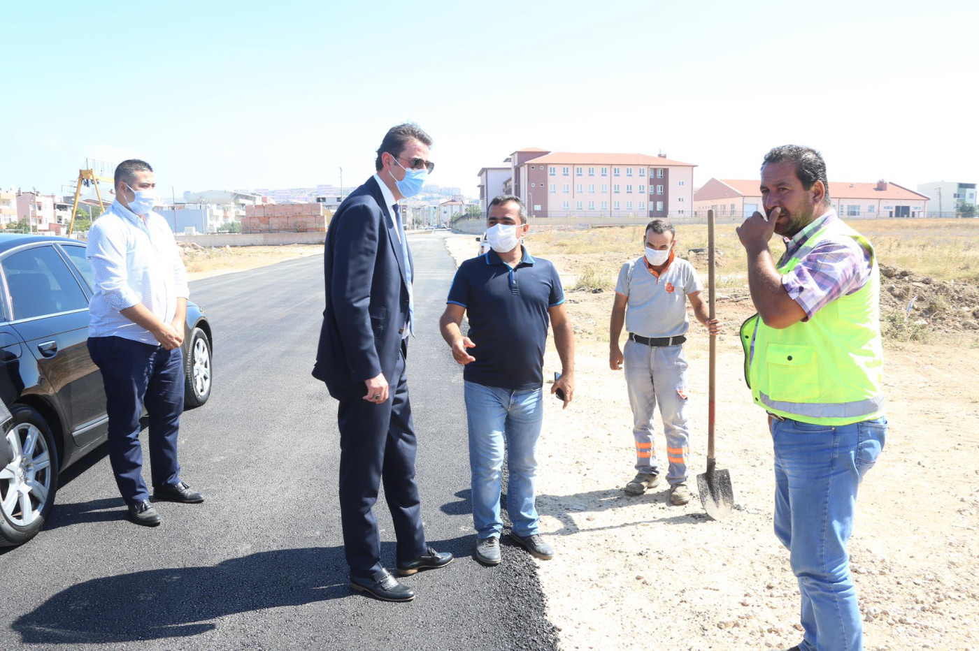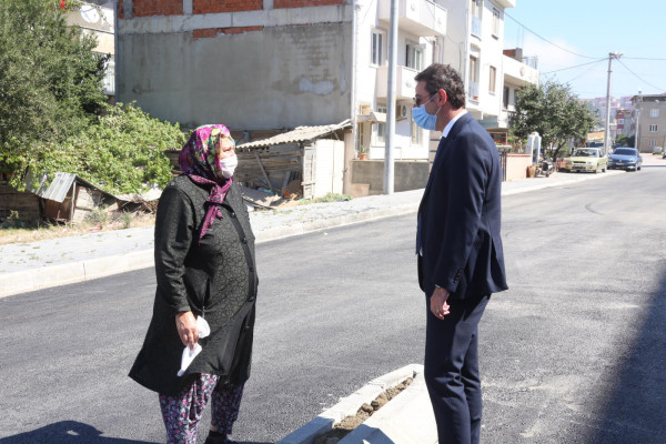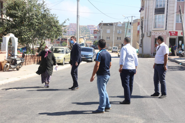 Belediye Başkanı Av. Tolga Tosun, 100.Yıl Mahallesi 1609 Sokakta yapılan asfalt serim çalışmalarını yerinde inceledi.