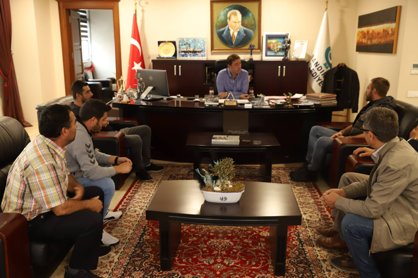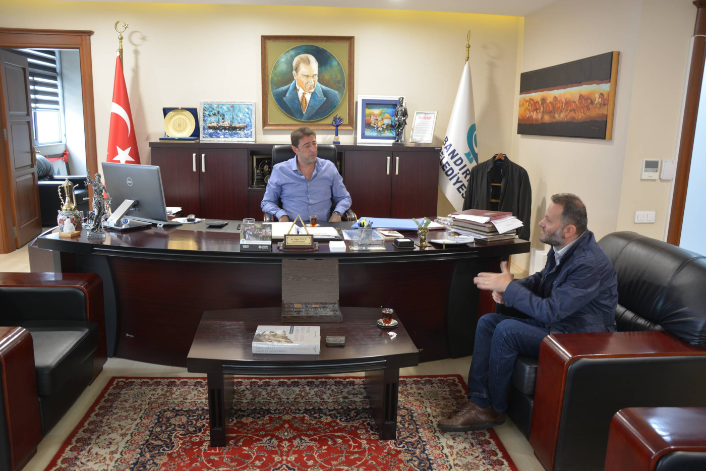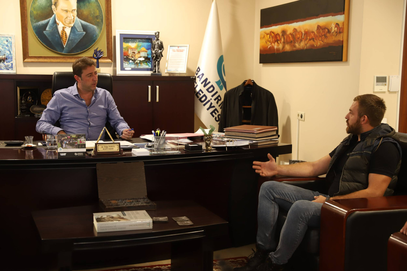 Belediye Başkanı Av. Tolga Tosun, hafta sonunda vatandaşları makamında ağırlamayı sürdürüyor. Hafta içi belediye hizmet ve çalışmalarının takibinden dolayı oluşan yoğunluk nedeniyle vatandaşlarımızla haftasonunda bir araya gelen Başkan Tolga Tosun, vatandaşlarımızdan gelen istek ve taleplerini dinliyor. Ziyaretlerle ilgili açıklamalarda bulunan Başkan Tolga Tosun, Bandırma'nın büyük bir şehir olduğunu belirterek, hafta içinde belediye çalışmaları, Büyükşehir ve Encümen gibi toplantılar, Mahalle ziyaretleri gibi yoğun geçen program nedeniyle bir araya gelmediğimiz vatandaşlarımızla hafta sonunda belediyemizde görüşüp istek ve taleplerini bizlere iletiyorlar. Bizlerde belediyemizin imkanları ölçüsünde neler yapabileceğimizi değerlendiriyoruz” dedi.