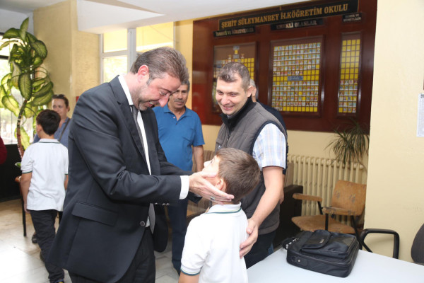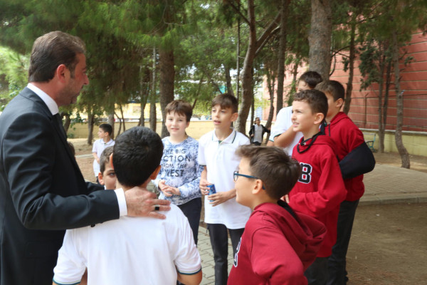 BELEDİYE BAŞKANI AV. TOLGA TOSUN ŞEHİT SÜLEYMAN BEY ORTA OKULU’NU ZİYARET ETTİ Belediye Başkanı Av. Tolga Tosun Şehit Süleyman Bey Orta Okulunu ziyaret ederek öğrenciler ve öğretmenlerle bir araya geldi. Ziyaretle ilgili açıklama yapan Belediye Başkanı Av. Tolga Tosun: “Şehit Süleyman Bey Orta Okulumuzu ziyaret edip bahçe düzenlemesiyle ilgili taleplerini dinledik. Okulların yatırımları Milli Eğitim tarafından yapılsa da çocuklar bizim çocuklarımız diyerek, daha iyi koşullarda öğrenim görmeleri için bizden isteklerini imkanlarımız ölçüsünde yerine getireceğiz. Şehit Süleyman Bey Orta Okulumuzda yapacağımız düzenlemeler ile çocuklarımız daha iyi koşullarda eğitimlerini alacak” dedi.