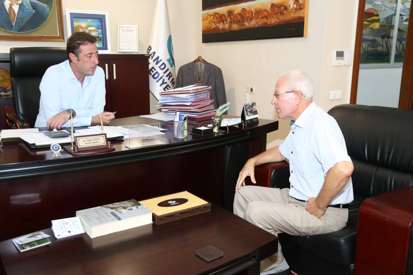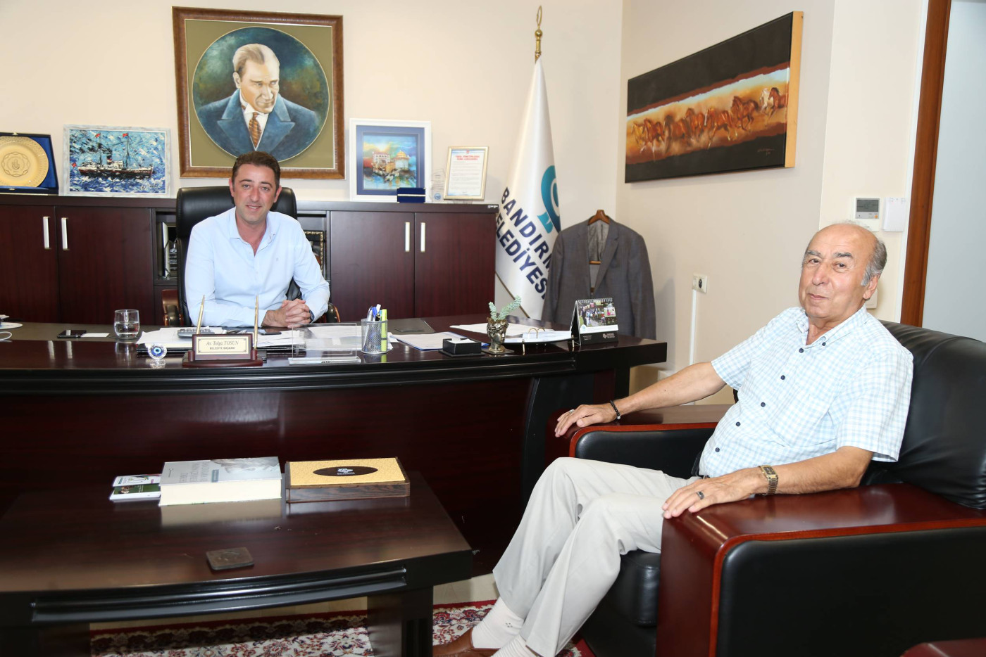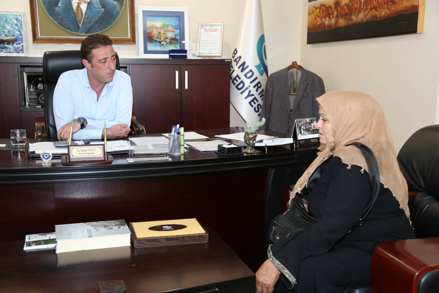 Bandırma Belediye Başkanımız Av. Tolga Tosun, hafta sonunda da mesaisine devam ederek vatandaşları makamında ağırlamaya devam etti. Belediye Başkanı Av. Tolga Tosun: “Hafta içindeki programlarımızda belediye çalışmaları, toplantılar ve incelemelerle vatandaşlarımızla bir arada olmaya özen gösteriyoruz. Ancak yoğun tempomuzda bizi yerimizde bulamayan vatandaşlarımızın istek ve taleplerini almak için hafta sonunda vatandaşlarımızla  bir araya geliyoruz. Bu buluşmalarımızda vatandaşlarımız bizlere istek ve taleplerini iletiyor ve bizde belediyemizin imkanları ölçüsünde neler yapabileceğimizi ele alıyoruz” dedi.