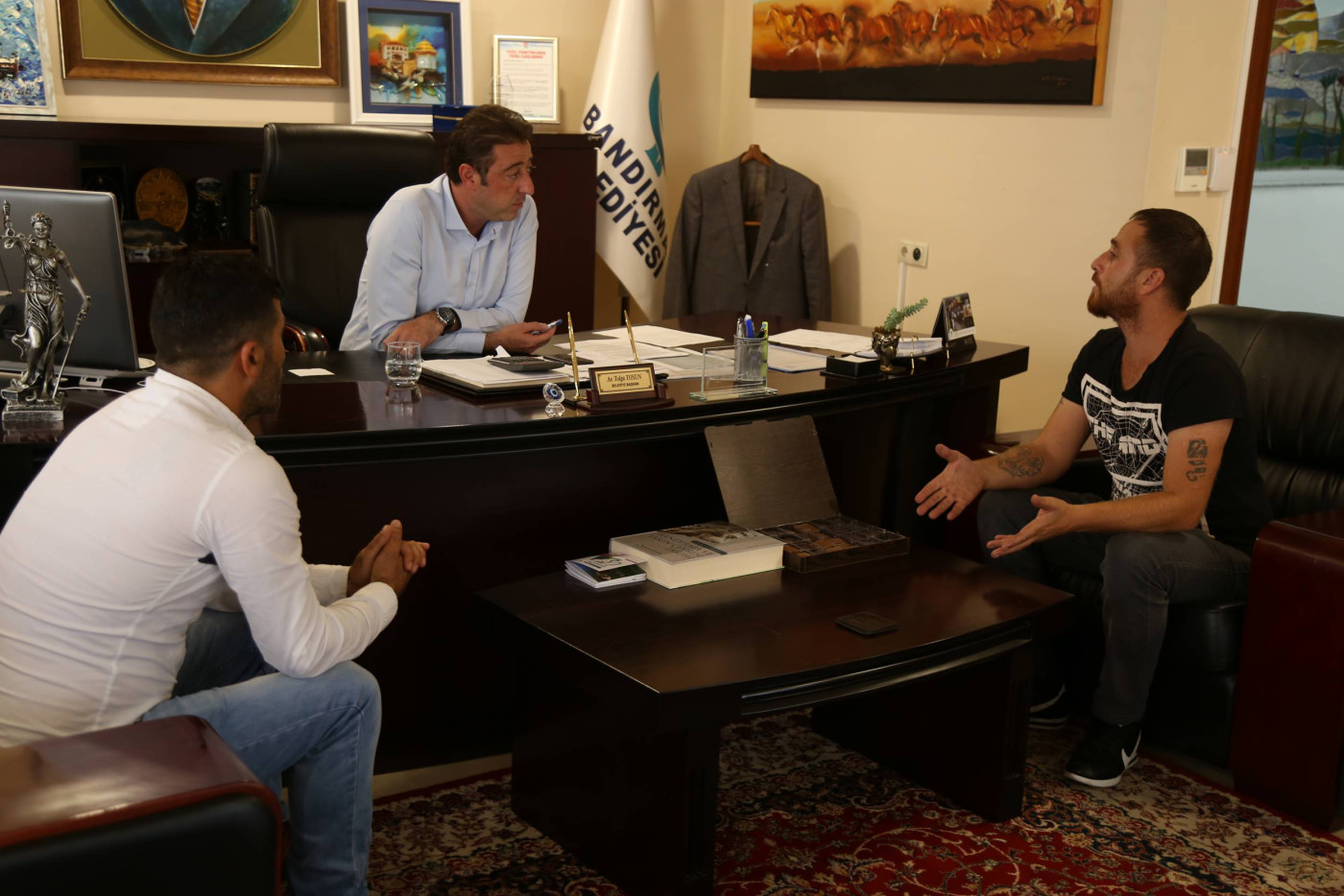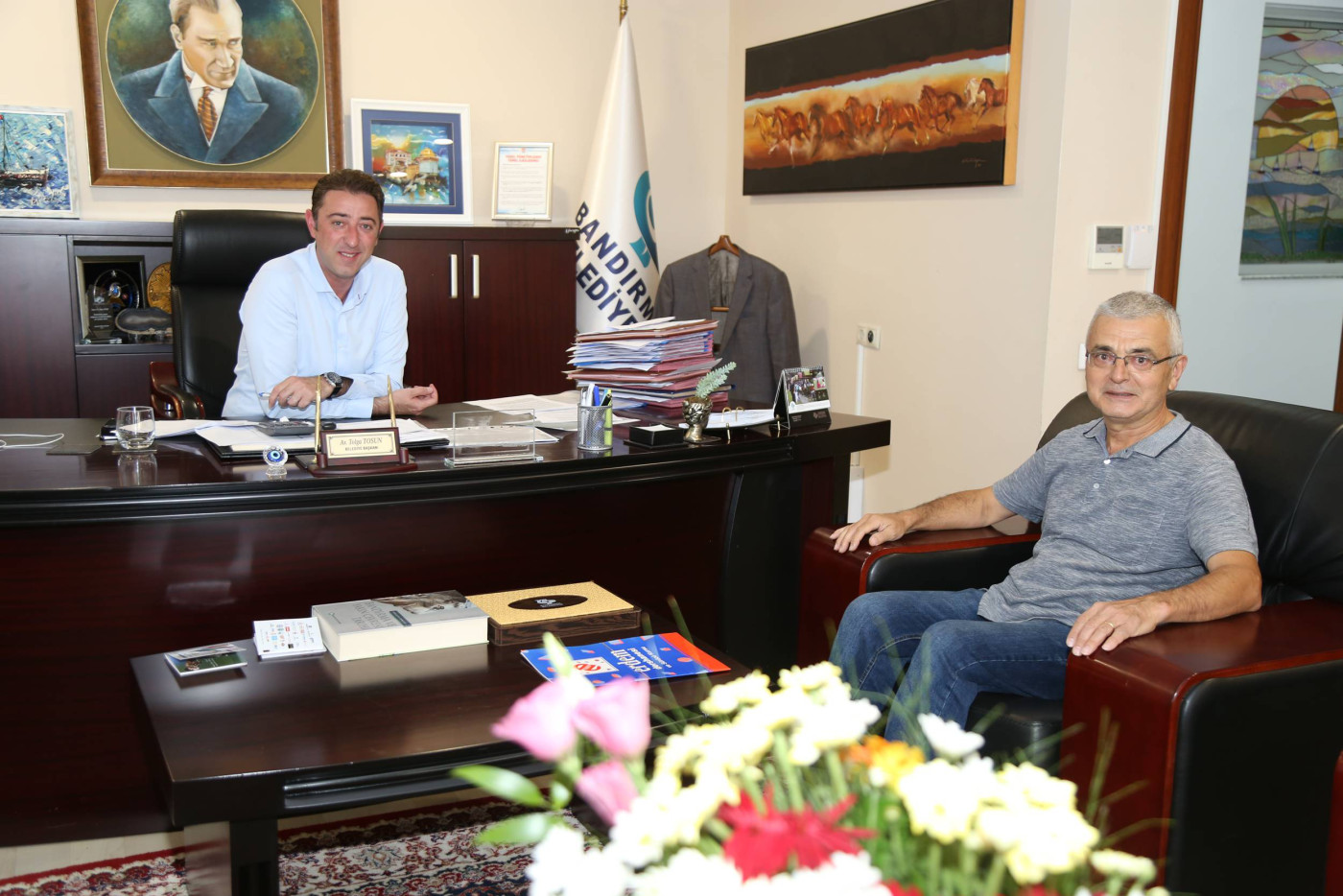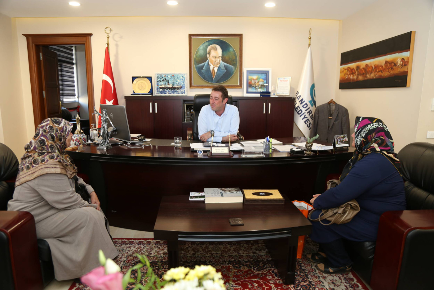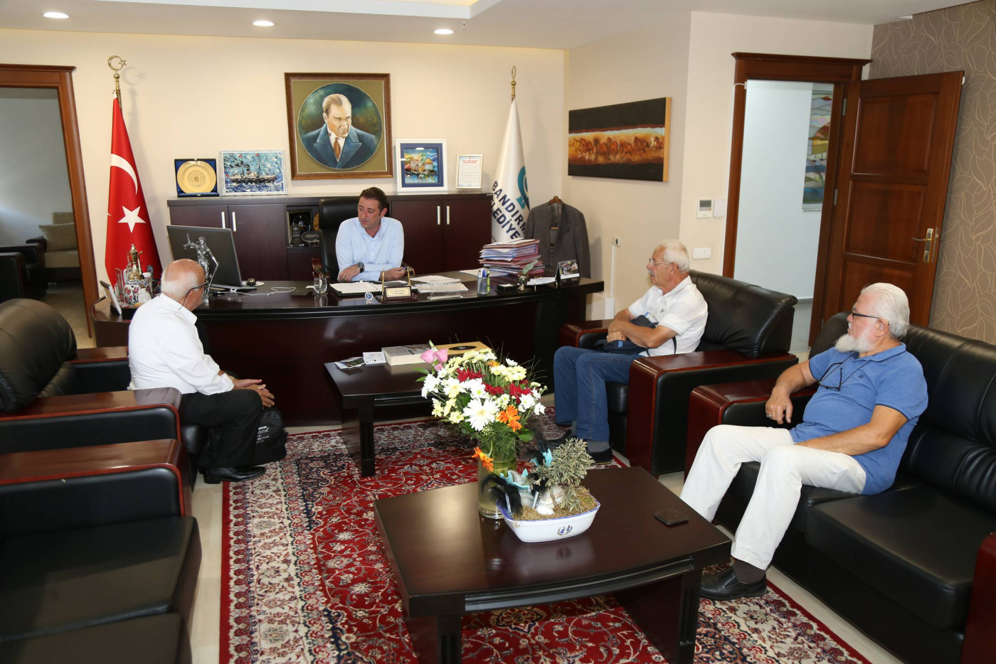 Bandırma Belediye Başkanımız Av. Tolga Tosun, hafta sonunda da mesaisine devam ederek vatandaşları makamında ağırlamaya devam etti. Belediye Başkanı Av. Tolga Tosun: “Hafta içindeki programlarımızda belediye çalışmaları, toplantılar ve incelemelerle vatandaşlarımızla bir arada olmaya özen gösteriyoruz. Ancak yoğun tempomuzda bizi yerimizde bulamayan vatandaşlarımızın istek ve taleplerini almak için hafta sonunda vatandaşlarımızla  bir araya geliyoruz. Bu buluşmalarımızda vatandaşlarımız bizlere istek ve taleplerini iletiyor ve bizde belediyemizin imkanları ölçüsünde neler yapabileceğimizi ele alıyoruz” dedi.