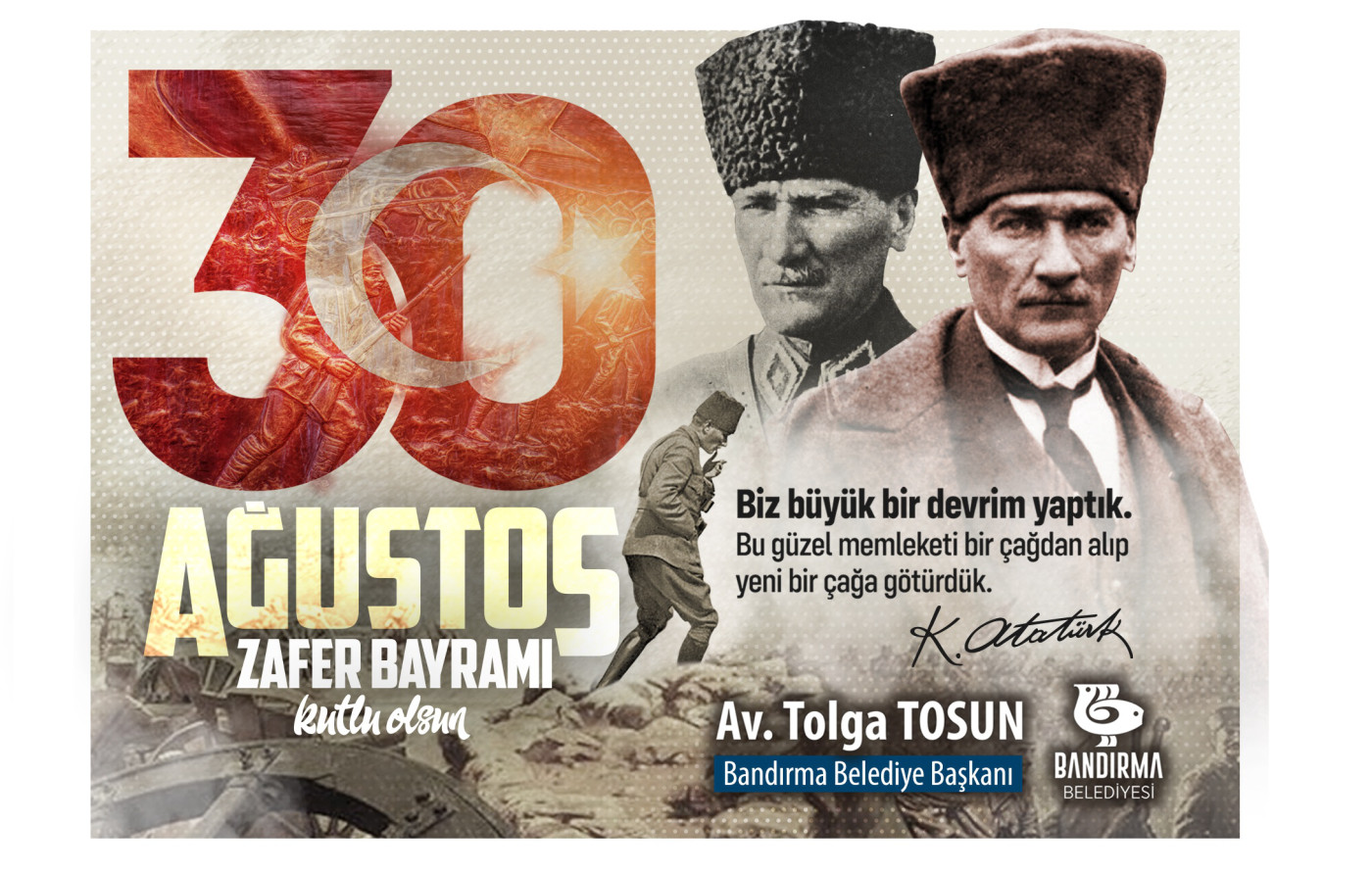 BELEDİYE BAŞKANI AV.TOLGA TOSUN’UN 30 AĞUSTOS ZAFER BAYRAMI KUTLAMA MESAJI…