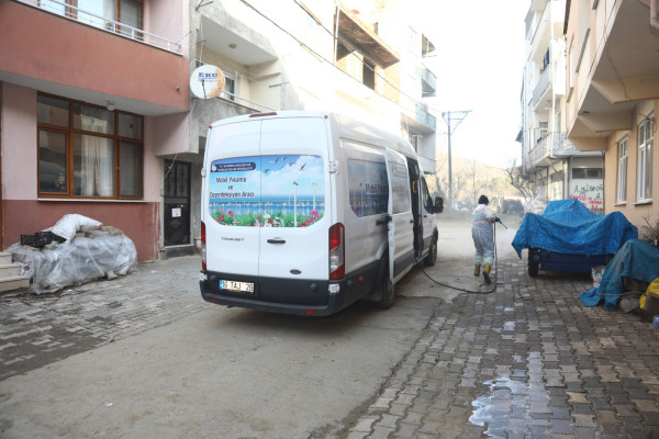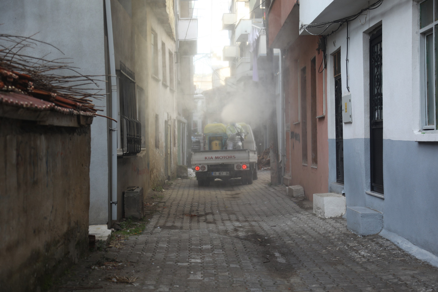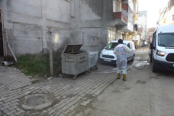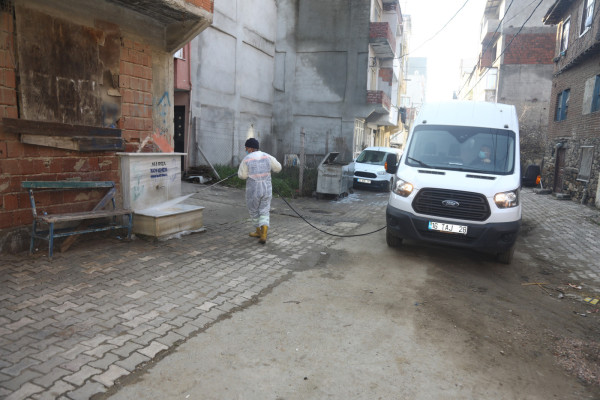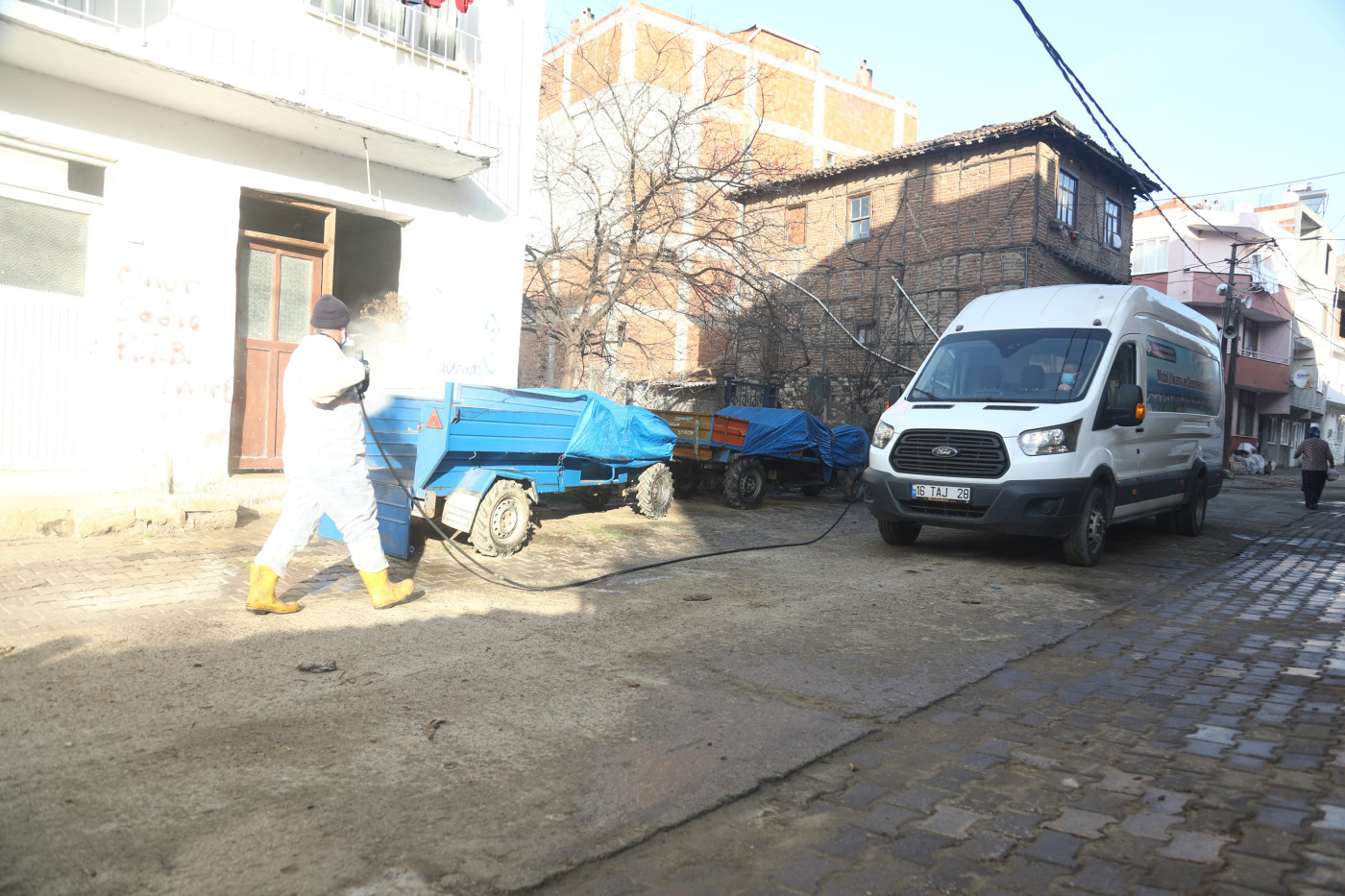 BELEDİYE EKİPLERİNDEN KARŞIYAKA MAHALLESİNDE DEZENFEKTE ÇALIŞMALARI