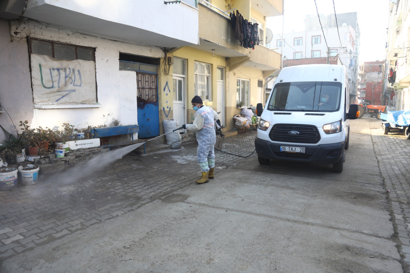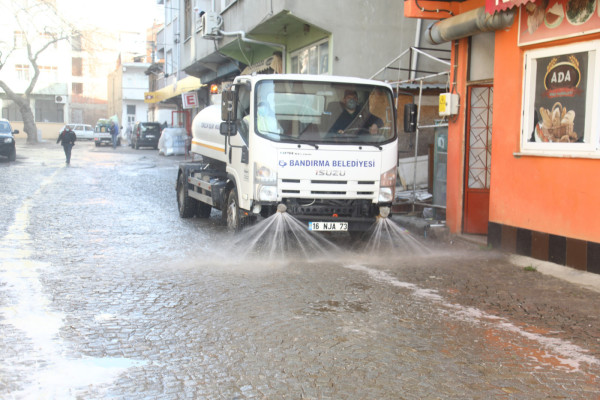 Bandırma Belediyesi ekipleri covid-19 vakalarının artış göstermesi nedeniyle karantinaya alınan Karşıyaka Mahallesinde dezenfekte ve ilaçlama çalışmalarını yerine getirdi. Salgının etkisini gösterdiği ilk günden itibaren gece gündüz demeden yoğun bir çalışma temposu içinde olan Belediye dezenfekte ekibi son olarak karantina altında bulunan Erdek Karşıyaka Mahallesinin tüm sokaklarında yerine getirerek örnek bir çalışmaya imza attı.