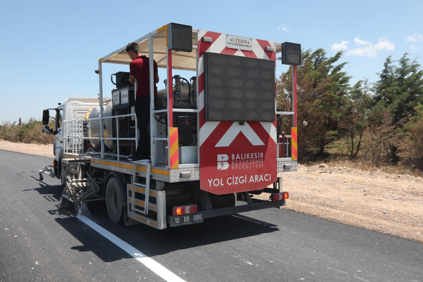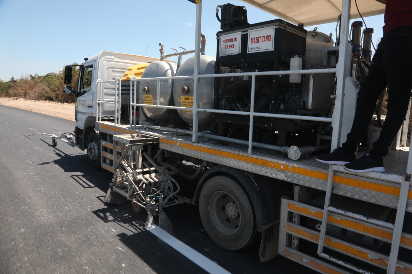 BELEDİYE EKİPLERİNDEN YENİ YOLLARA YENİ ÇİZGİLER Bandırma Belediyesi, yapımı tamamlanan yeni yollarda trafik çizgilerini yeniledi. Etibor Slam Yolu olarak kullanılan ve Happy Center ile Kent Mezarlığı arasında kalan bölümdeki yolun yenilenmesinin ardından Belediye ekipleri yaya ve sürücülerin güvenliğini sağlamak amacıyla bu yol üzerinde yol şerit çizgisi çalışmalarını yerine getirdi. Büyükşehir Belediyesi ekiplerinin de katkı sunduğu çalışmalarda Bandırma Belediyesi Ekipleri trafik akışının düzenli ve şeritlerin belirgin hale gelmesini sağladı.