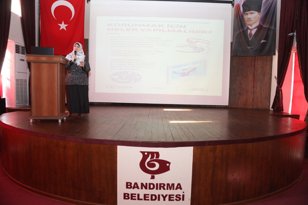 BELEDİYE PERSONELİNE KORONA VİRÜSÜNDEN KORUNMA EĞİTİMİ VERİLDİ Bandırma Belediyesi çalışanlarına korona virüsten korunma ve virüse karşı alınacak önlemler ile ilgili sağlık eğitimi verildi. Çin’in Vuhan şehrinde ortaya çıkan ve tüm dünyayı tedirgin eden korona virüsü ile ilgili İş Yeri Hekimi Semin Güler Oğurtan tarafından Bandırma Belediyesi personeline eğitim düzenlendi. Bandırma Belediyesi Santral Kültür Merkezi düzenlenen ve Hekim Semin Güler Oğurtan tarafından verilen eğitimde belediye personeli bilgilendirildi. Hekim Semin Güler Oğurtan virüslerin çeşitlerine ve tarihçesine değinerek tüm dünyada tehlike yaratan korona virüse karşı alınacak önlemleri anlattı. Ayrıca eğitim Belediyemizin dış birimlerimde de verildi.