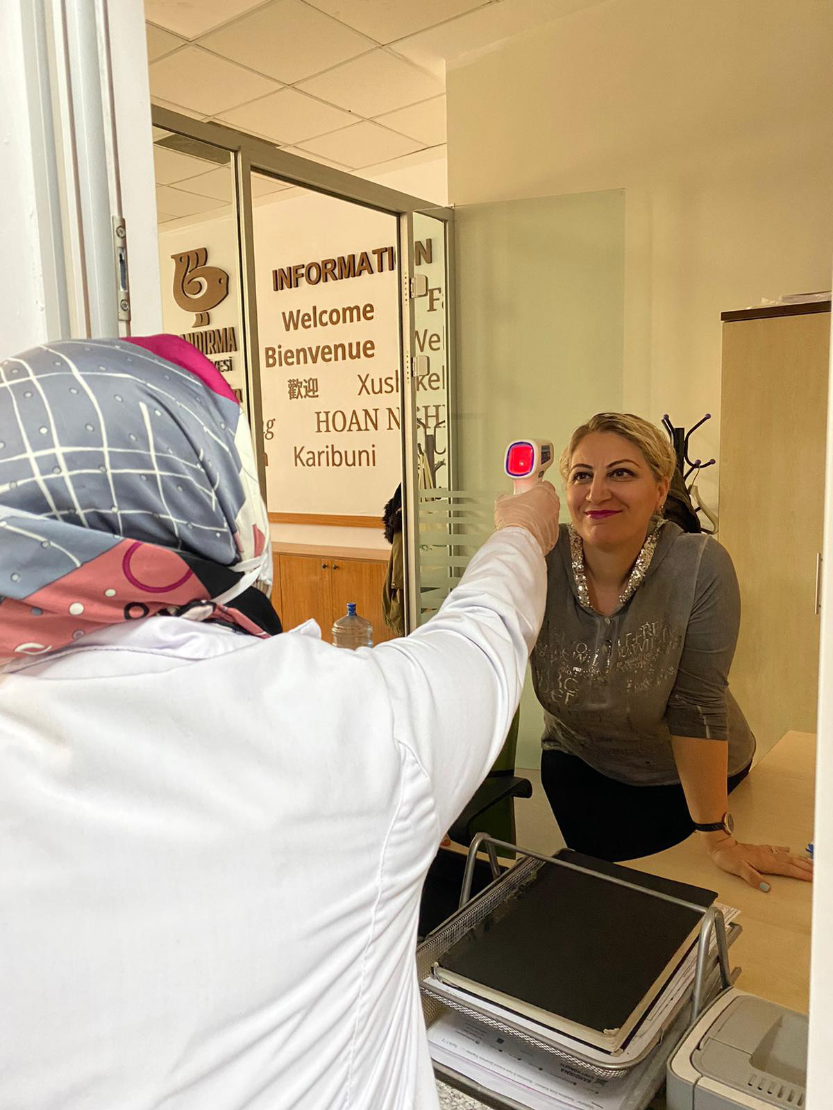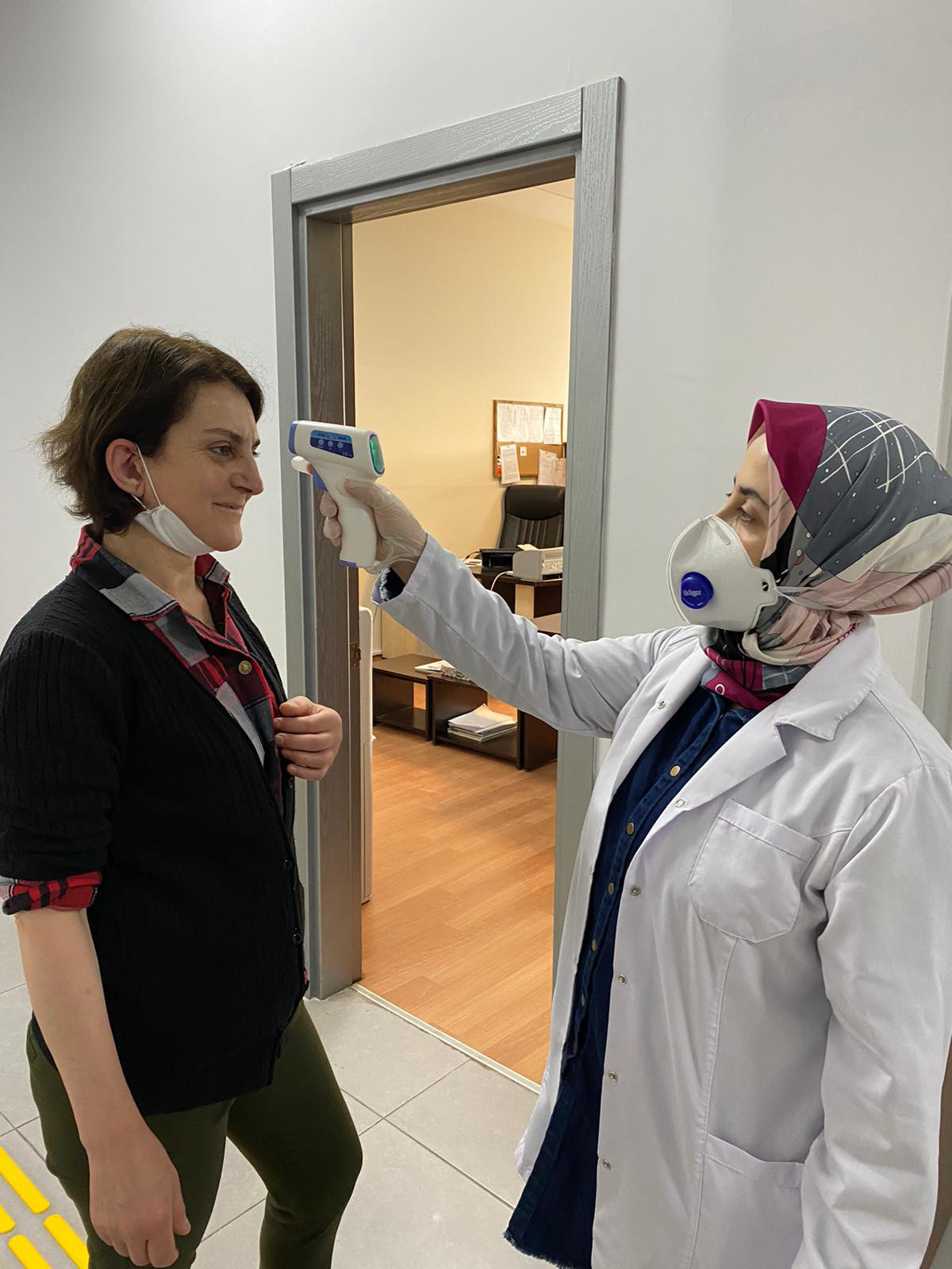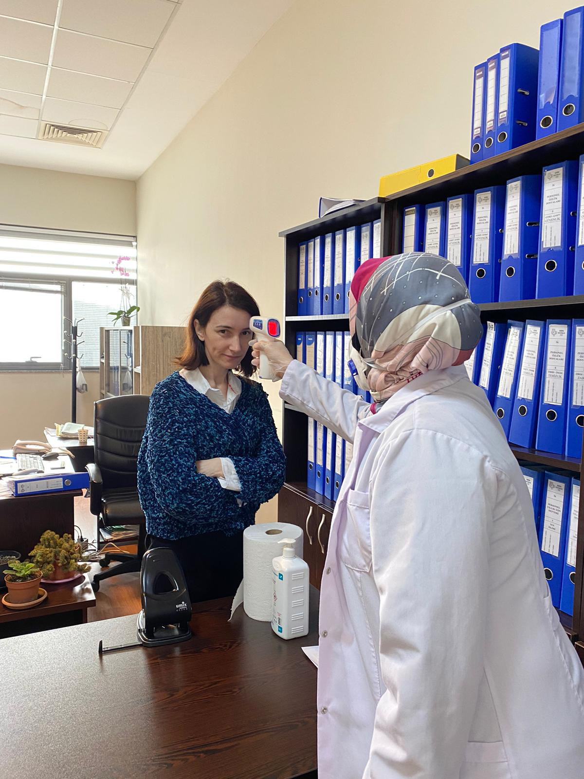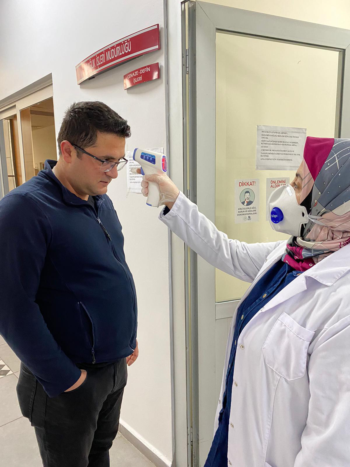 Bandırma Belediyesi Sağlık İşleri Müdürlüğü ekipleri Belediye Hizmet binasında personel sağlık denetimlerini gerçekleştiriyor. Salgınla mücadele çalışmaları kapsamında Belediye Başkanı Av.Tolga Tosun’un talimatıyla Belediye Sağlık Personellerince yapılan uygulamada hizmet binasında çalışan personelin ilk etapta ateşi ölçülerek risk oluşturup oluşturmadığı kontrol ediliyor. Yapılan denetimlerin bundan sonra da periyodik olarak devam edeceği öğrenildi. Bununla birlikte Hizmet Binasında belirli aralıklarla yapılan dezenfekte çalışmalarına ilave olarak tüm daire müdürlüklerine maske, eldiven ve dezenfektan dağıtımı yapılarak daha hijyenik bir çalışma ortamı sağlanması amaçlanıyor.