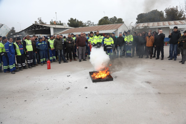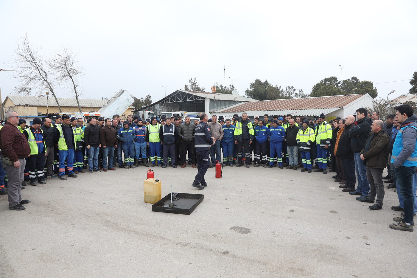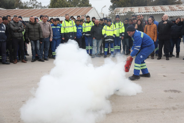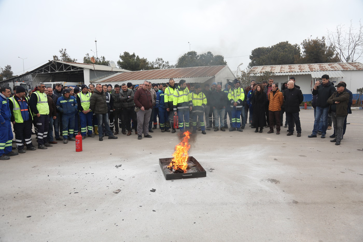 BELEDİYE ŞANTİYESİNDE YANGIN TATBİKATI.