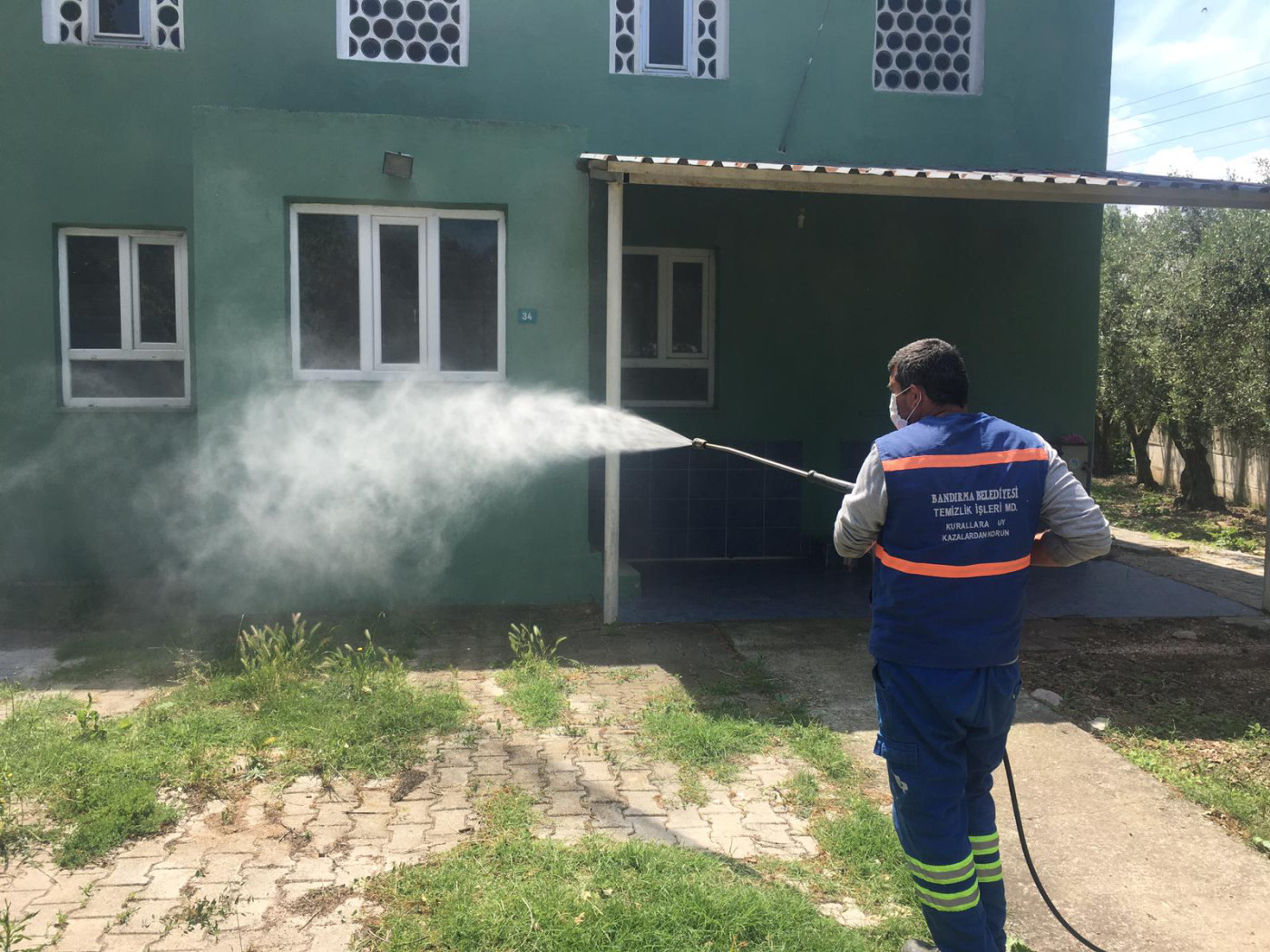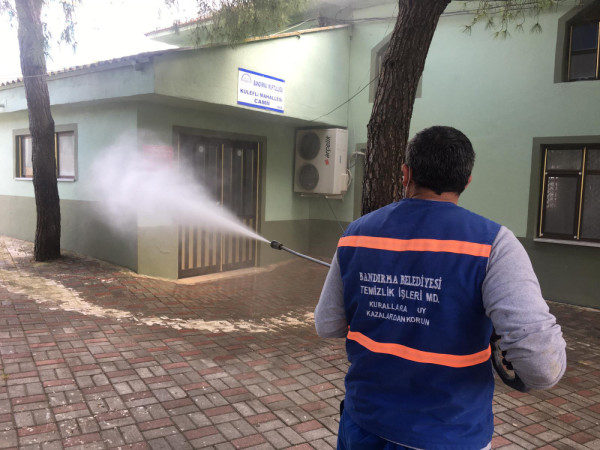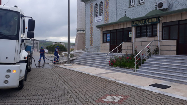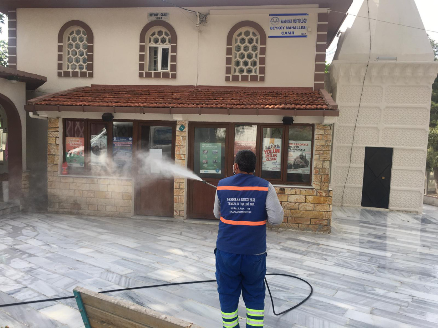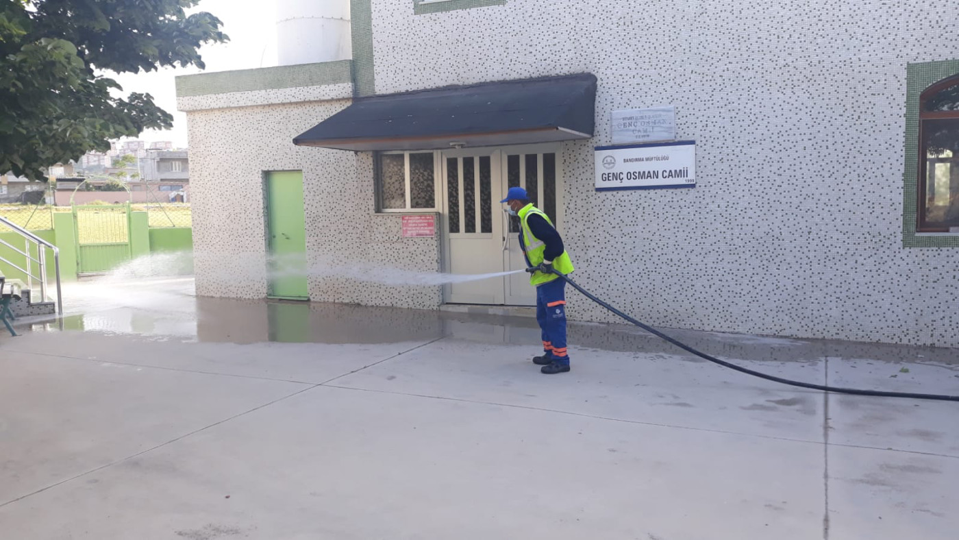 CAMİLERİMİZ CUMA NAMAZI İÇİN DEZENFEKTE EDİLDİ   Bandırma Belediyesi, yarınki Cuma Namazı öncesinde camilerimizde hijyen ve ilaçlama çalışmalarını yerine getirdi.    Salgınla mücadele kapsamında iki ayı aşkın bir süredir ibadete kapalı olan camilerimiz İçişleri Bakanlığı’nın yayınladığı genelgede 29 Mayıs Cuma günü itibariyle, cami ve mescitlerde cemaatle birlikte öğle, ikindi ve cuma namazları kılınabileceğini belirtildi.   Yapılan düzenlemeyle Cuma namazları avluda, öğle ve ikindi namazları sosyal mesafeyi koruyarak içeride cemaatle kılınabilecek. Vatandaşlar abdestlerini evde alıp, maske ve eldiven takıp, kendi getirdikleri seccade ile cami avlusunda namaz kılabilecek. Bu amaçla uzun süredir ibadete kapalı olan camilerimizde vatandaşlarımızın daha sağlıklı bir şekilde ibadetlerini yerine getirebilmeleri için Bandırma Belediyesi ekipleri merkez ve kırsal mahallelerimizde hijyen çalışmalarını yerine getirdi.   Belediye Başkanı Av. Tolga Tosun konu ile ilgili yaptığı açıklamada: " Cuma namazıyla yeniden ibadet açılacak camilerimizde de, toplum sağlığı için gerekli önlemleri alıyoruz. Vatandaşlarımız yarından itibaren Diyanet İşleri Başkanlığının belirlediği namaz vakitlerinde ibadetlerini yapabilmeleri için camilerimizin hem iç hem de dış alanlarını dezenfekte ediyoruz. Vatandaşlardan ricamız, ibadetlerini yerine getirirken hijyen ve sosyal mesafe kurallarına dikkat etmeleri. Allah namazlarımızı ibadetlerimizi kabul etsin" dedi.