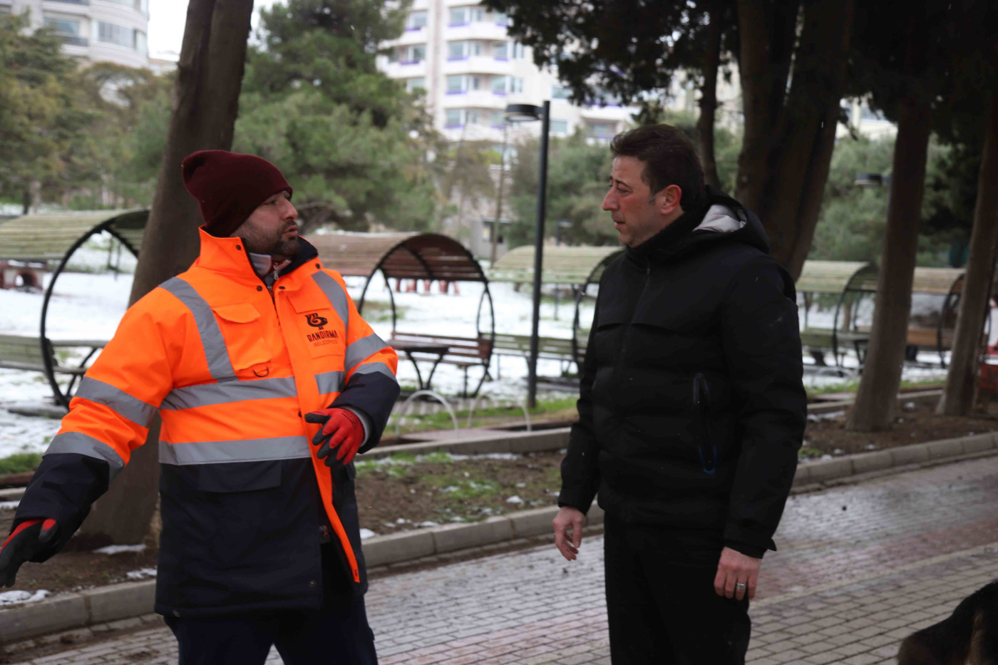 Bandırma Belediyesi, kentin tamamında etkili olan kar yağışı ve soğuk havalarda yiyecek bulmakta zorlanan hayvanlar için besleme çalışmalarını sürdürüyor. Sağlık İşleri Daire Müdürlüğü tarafından planlanan çalışmalara, Bandırma Belediye Başkanı Av. Tolga Tosun da bizzat katıldı. Taş Ocağı, Eski Çöplük, Ziraat Bahçesi ve Bandırma’nın birçok bölgesinde yapılan mama dağıtım çalışmalarıyla birlikte, şehrin muhtelif yerlerinde kurulan ve sokak hayvanlarının sığınabilecekleri kulübeler de kontrol edildi. Belediye Başkanı Av. Tolga Tosun, yapılan çalışmalar esnasında minik dostlarımızla yakından ilgilenmeyi ihmal etmedi. Yaşadıkları sokaklarda, çetin kış şartlarının yanı sıra su ve yiyecek sıkıntısı da çeken can dostlarımızı lütfen sizler de unutmayın. Onlar için uygun yerlere yiyecek ve donup buz tutmaması için birkaç damla sıvı yağ damlatılmış su bırakmayı unutmayınız.