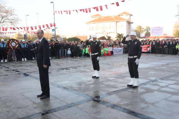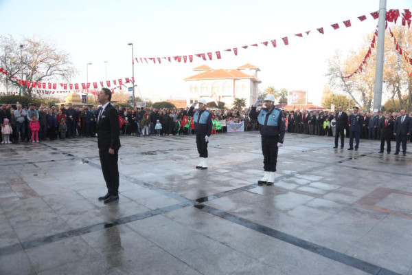 CUMHURİYETİMİZİN KURUCUSU ULU ÖNDER MUSTAFA KEMAL ATATÜRK VEFATININ 81.YILINDA TÖRENLER İLE ANILDI Cumhuriyet Meydanında düzenlenen törende saatler 09.05’i gösterdiği sırada tüm Türkiye ile birlikte Atamıza saygıya duruldu. Saygı duruşunun ardından İstiklal Marşı okunarak Atatürk Anıtına çelenkler bırakıldı. Törenin sonlanmasıyla Barış Manço Kültür Merkezinde hazırlanan anma programına geçildi. 10 Kasım münasebetiyle düzenlenen resim yarışmalarında dereceye giren öğrencilere ödülleri verildi. Şehit Mehmet Günenç Lisesi’nin hazırlandığı şiir ve müzik dinletisinde duygu dolu anlar yaşandı. Büyük Önder Mustafa Kemal Atatürk’ü Gurur, Özlem ve Saygıyla anıyoruz.