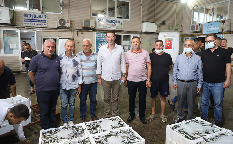 DENİZ AV SEZONU DUALARLA BAŞLADI   Bu sabah 05:00 gibi Bandırma Belediye Başkanı Av. Tolga Tosun, önceki dönem Belediye Başkanı Sedat Pekel, Meclis Üyeleri; Ümit Durukan ve Mesut Özdemir, CHP İlçe Başkanı Selim Panç ve AKP İlçe Başkanı Mehmet Doğan deniz avlanma sezonu başlangıç törenine katıldılar.   Bandırma Belediye Başkanı Av. Tolga Tosun, açılış öncesi yaptığı konuşmada: “Yaklaşık bir buçuk yıldan beri pandemi süreci, Akdeniz’de yangın, Karadeniz’de sel, İzmir’de deprem ve daha birçok felaketi art arda yaşadık. Bunların arasında bir de çevre ve doğa kirliliğinin yüksek seviyelerde olduğu Marmara’da, deniz sıcaklığının artması nedeniyle müsilaj oluşumu hepimizi tedirgin etti. Geçen yıl yaptığımız sezon açılışında kısmen daha çok balık vardı ve esnafımızı, halkımızı memnun etmişti. Bu yıl müsilaj nedeniyle maalesef çok daha az balık var. Diliyorum ki; önümüzdeki günlerde deniz sıcaklığının da düşmesiyle denizlerimizde bol bol balık olur da yüksek fiyatları nedeniyle et ve tavuk alamayan ihtiyaç sahipleri bu eksikliği balık ile giderebilirler. İnşallah sezon bol ve bereketli geçer. Kapalı Pazar Yerimizde balıkçı esnaflarımızın taleplerine uygun düzenlemeler de yapıyoruz. Sezonun hepimize hayırlı, uğurlu olmasını diliyorum” dedi.   Duaların ardından bu yıl çok daha az olan ilk balıklar mezatta satışa sunuldu.