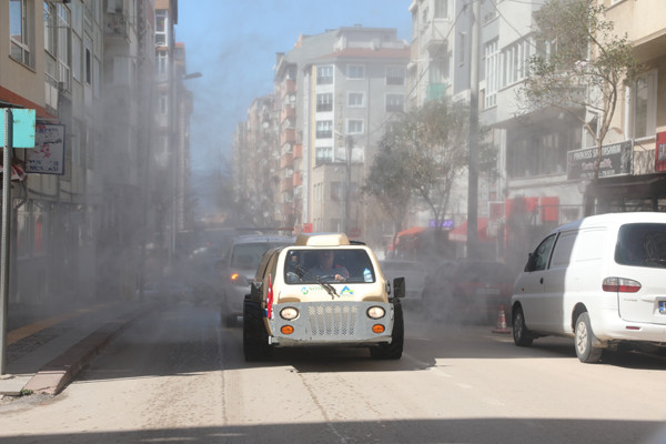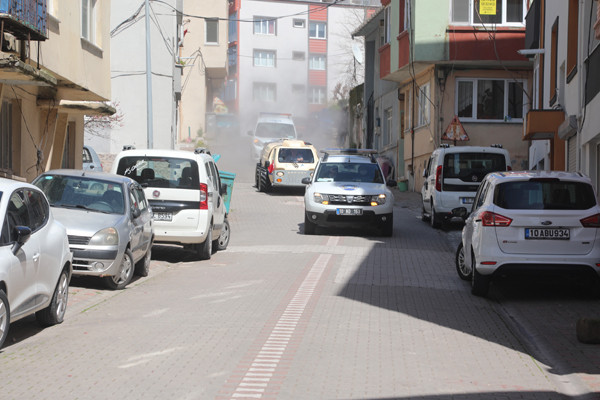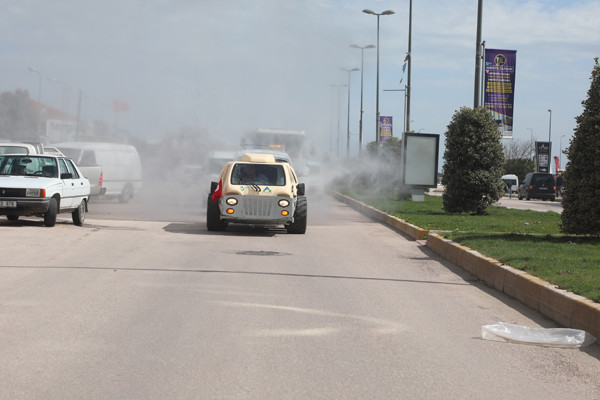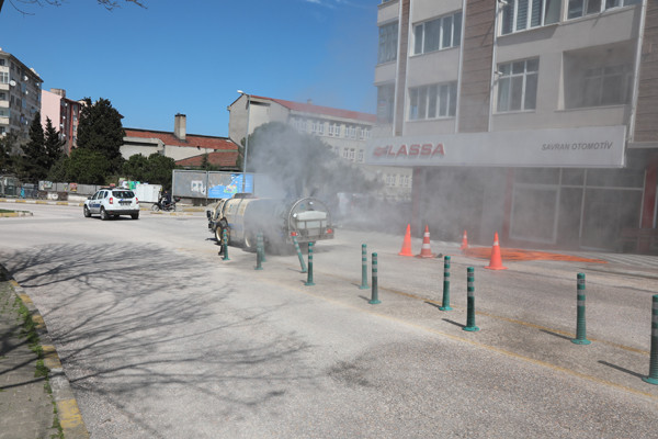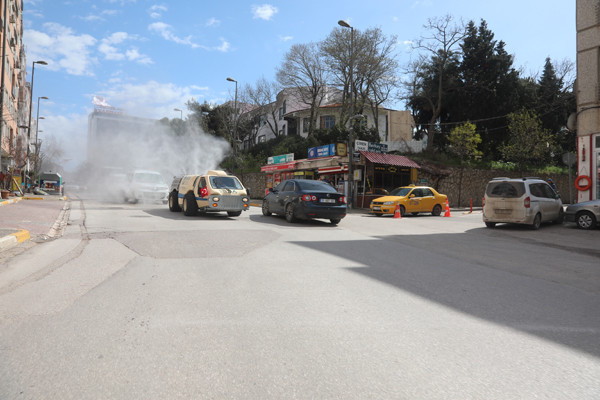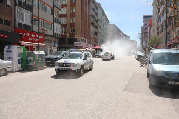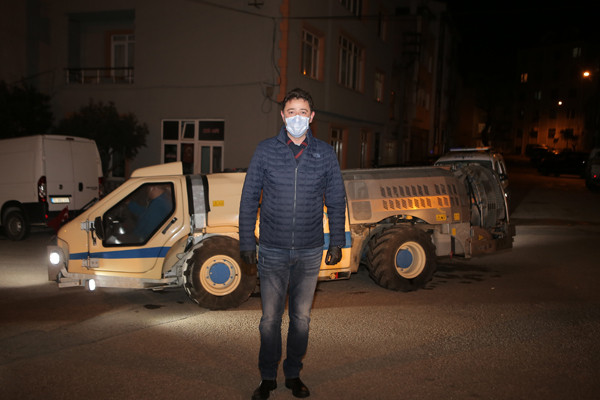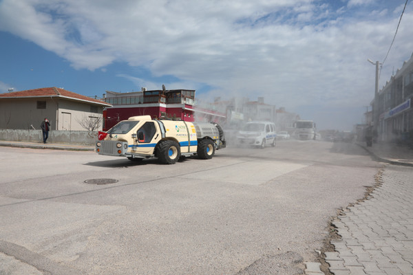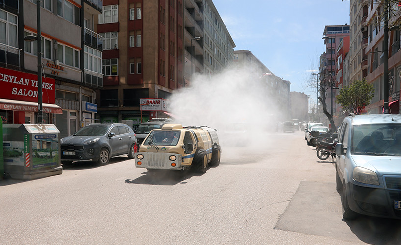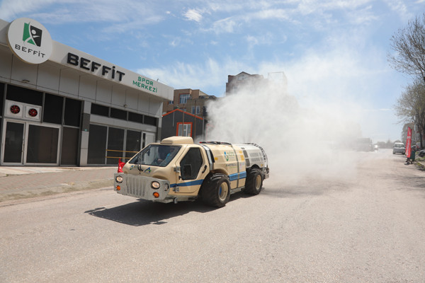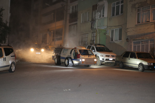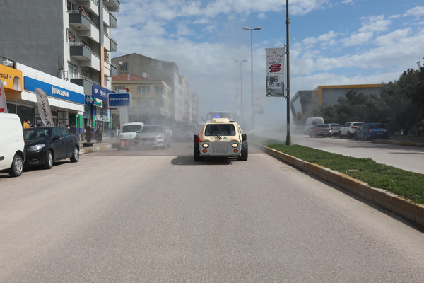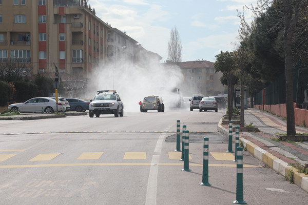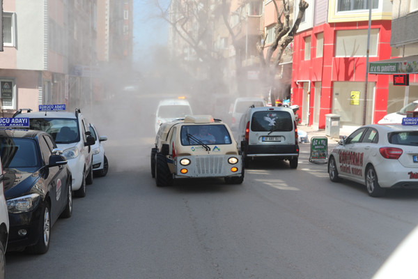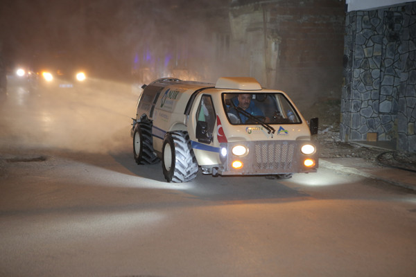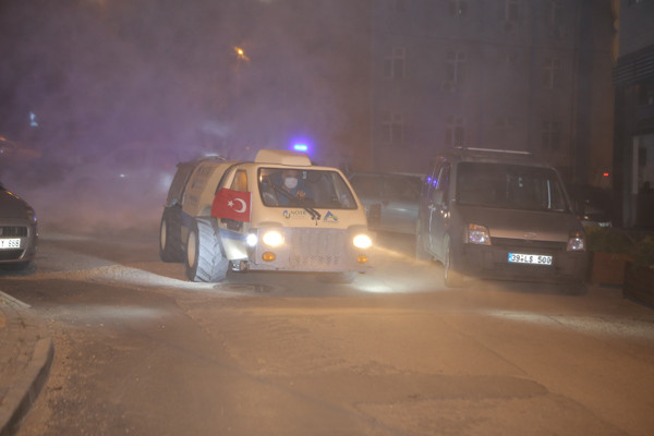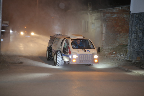 DEZENFEKTAN ÇALIŞMALARI CADDE VE SOKAKLARDA ÖZEL BİR ARAÇLA DEVAM EDİYOR