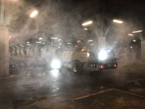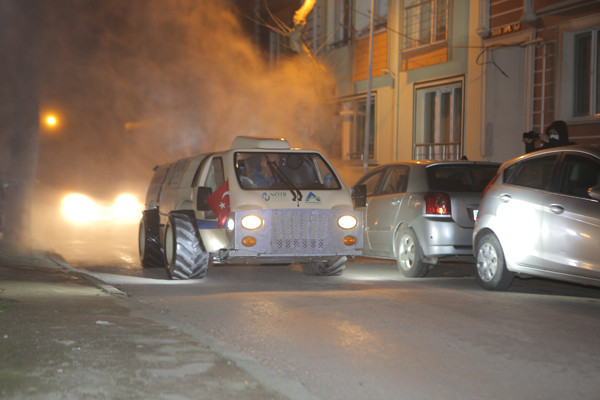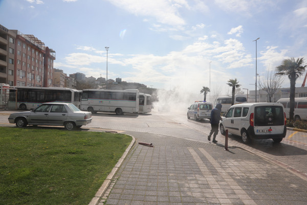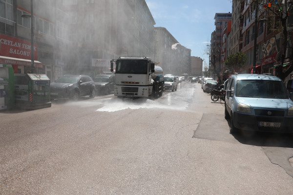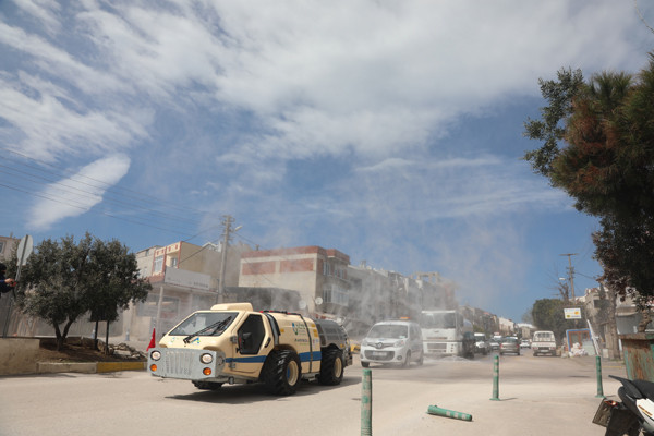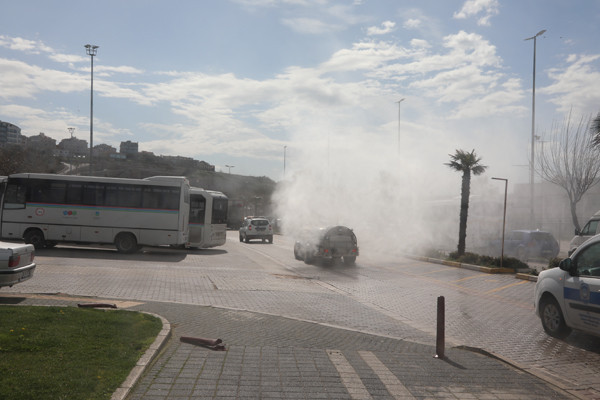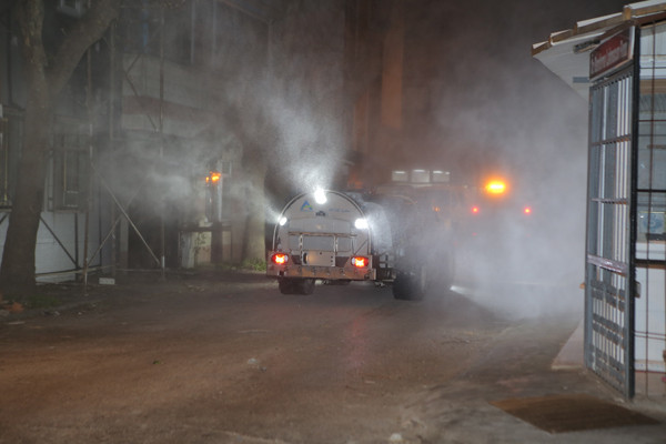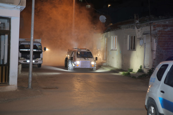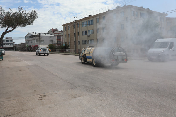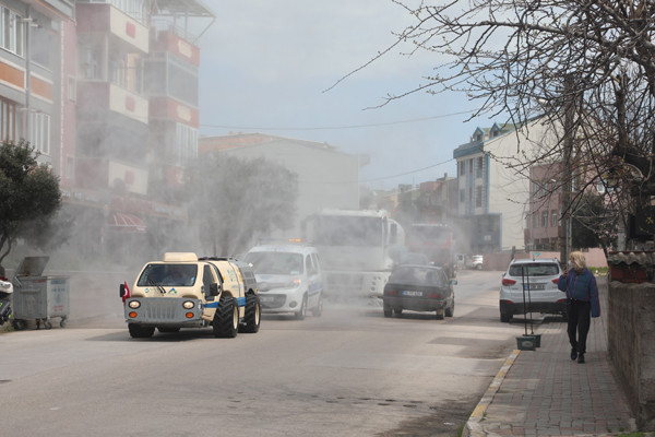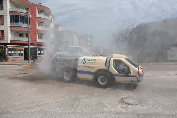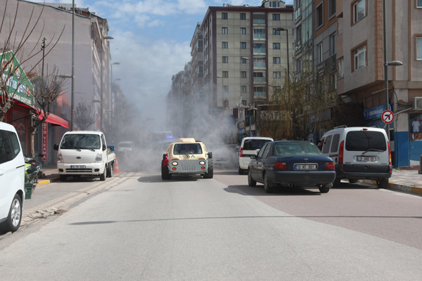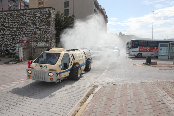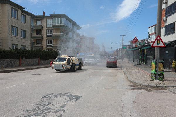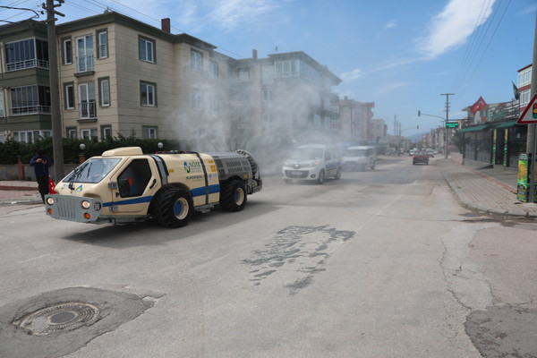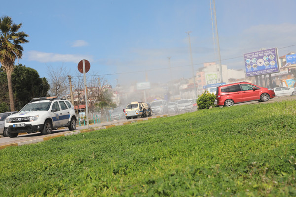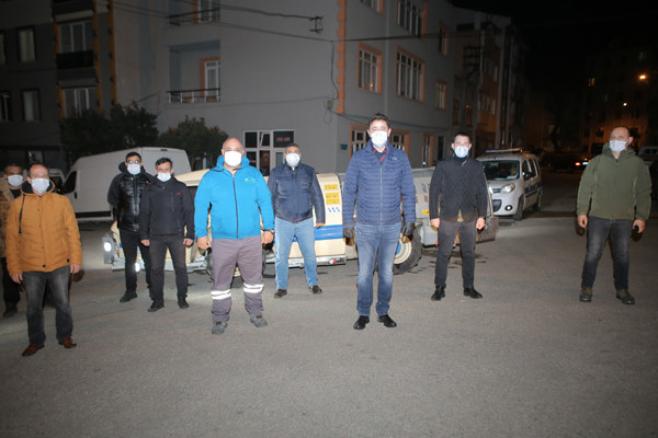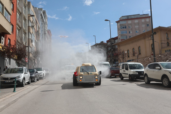 DEZENFEKTAN ÇALIŞMALARI CADDE VE SOKAKLARDA ÖZEL BİR ARAÇLA DEVAM EDİYOR