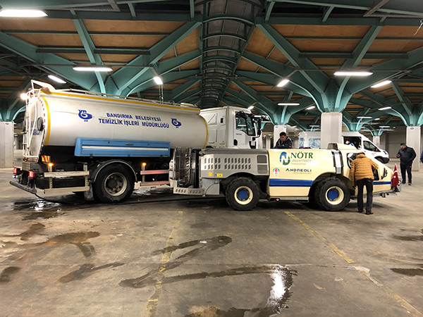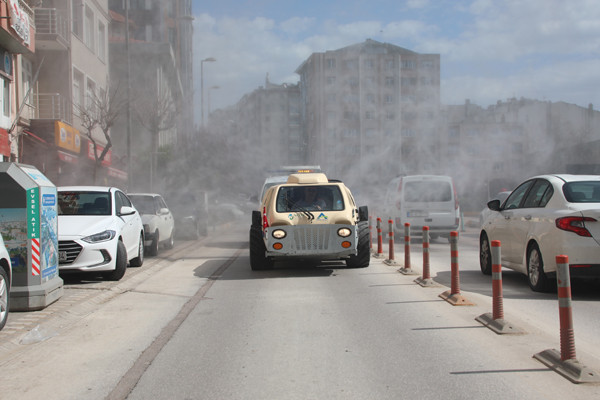 DEZENFEKTAN ÇALIŞMALARI CADDE VE SOKAKLARDA ÖZEL BİR ARAÇLA DEVAM EDİYOR   Bandırma Belediyesi salgınla mücadele çalışmaları kapsamında kent genelinde dezenfektan ve ilaçlama çalışmalarını özel olarak getirtilen Yeni İlaçlama Aracıyla daha etkin bir şekilde yerine getiriyor. Öğlen saatlerinde dezenfekte işlemine başlayan ekipler kentimizin ana caddelerinde çalışmalarını tamamladı. Çalışmaların yeni araç ile birlikte kentimdeki tüm mahallelerimizde hafta sonuna kadar devam edeceği öğrenildi. Bandırma’dan sonra Ankara Büyükşehir Başkanı Mansur Yavaş’ın talebiyle Başkent caddelerini ilaçlayacak.   Öte yandan İlaçlama Aracı, Bandırma’daki çalışmalarının ardından Ankara Büyükşehir Başkanı Av. Mansur Yavaş’ın talebiyle Başkent cadde ve sokaklarında kullanılmak üzere Ankara’ya da gideceği öğrenildi.