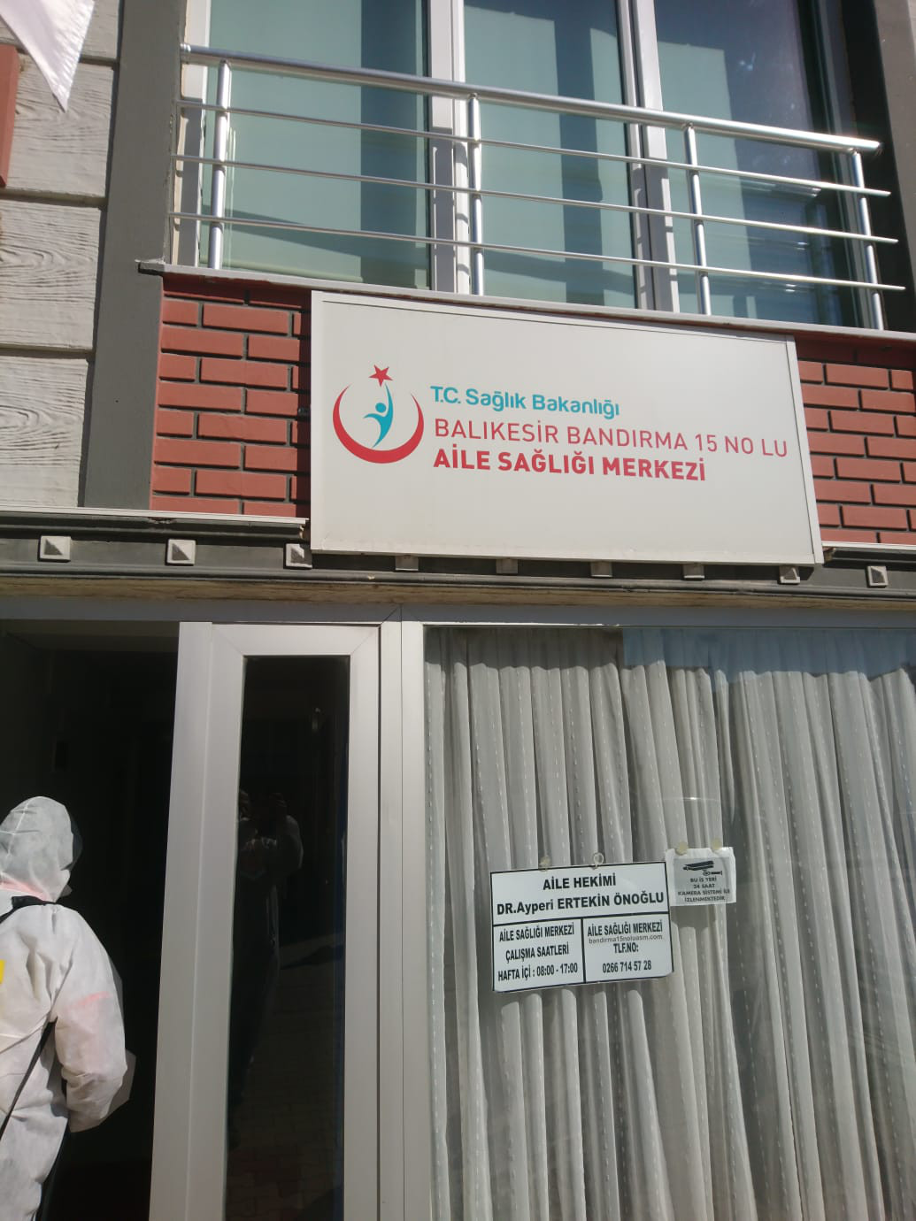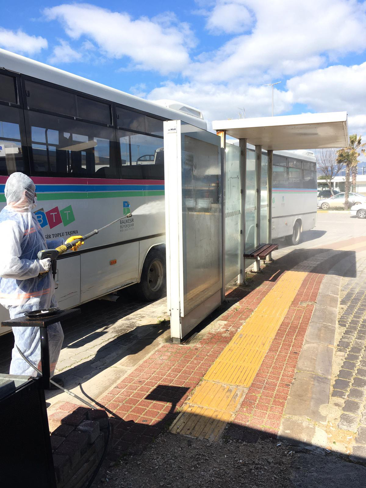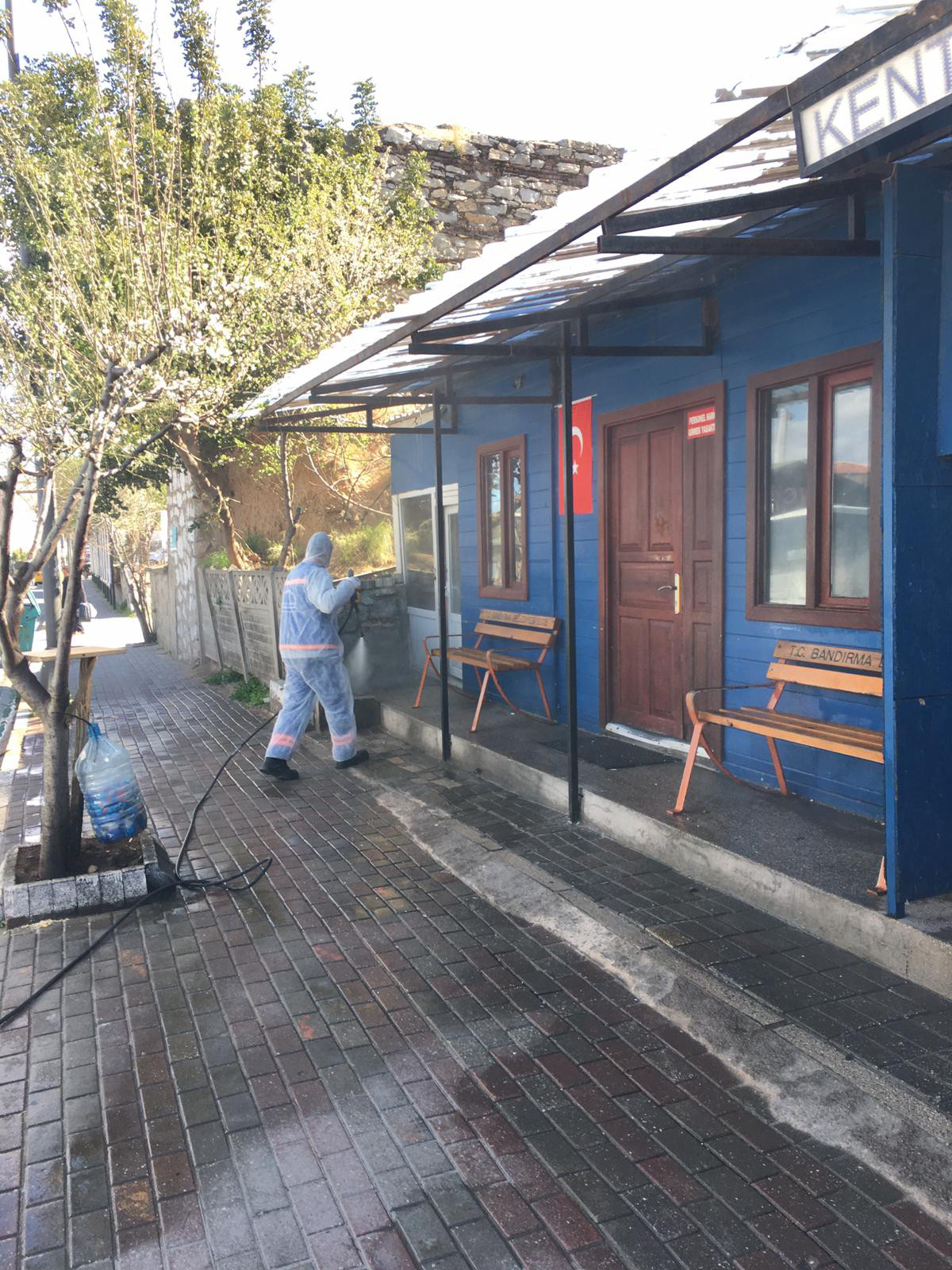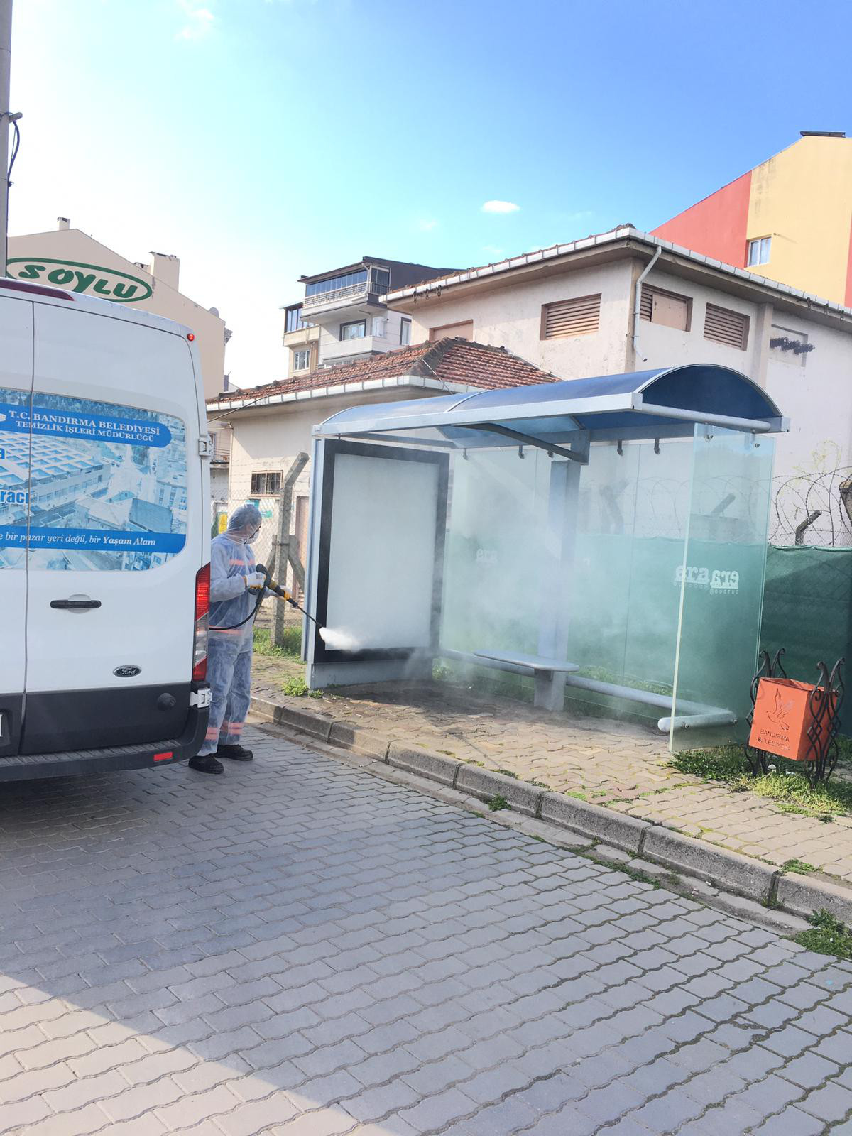 DEZENFEKTE ÇALIŞMALARI TÜM KURUM VE KURULUŞLARDA DEVAM EDİYOR   Vatandaşlarımızın sağlığını tehdit eden COVİD 19 (Corona) virüsüne önlem almak amacıyla, Bandırma Belediyemiz tarafından otobüsler, Resmi hizmet veren tüm kurum ve kuruluşlar, Aile Sağlık Merkezleri, duraklar, parklar vatandaşlarımız için risk oluşturabilecek tüm alanlar dezenfekte çalışması yapılarak ilaçlanmaya devama ediyor.   İlaçlama çalışmaları ara verilmeden devam edecek olup, hemşehrilerimizin sağlığı için gerekli önlemler alınmaktadır. Bu kapsamda Bandırma Belediyesi’nin kentimizde vatandaşlarımıza hizmet eden tüm kapalı ve açık alanların hepsinin düzenli olarak dezenfekte edilmesi planlanmıştır.