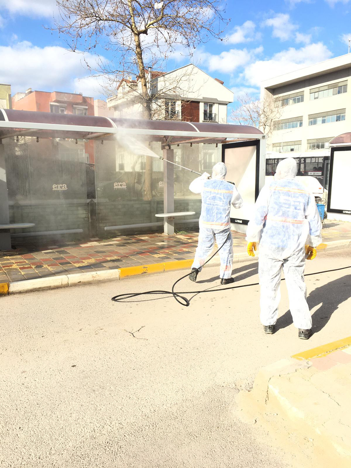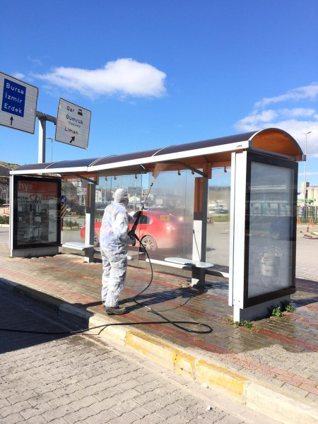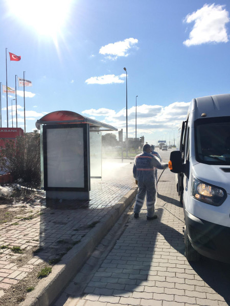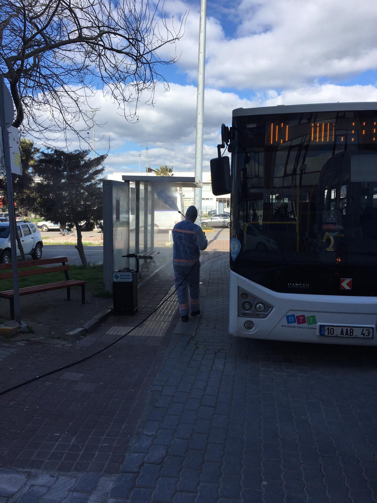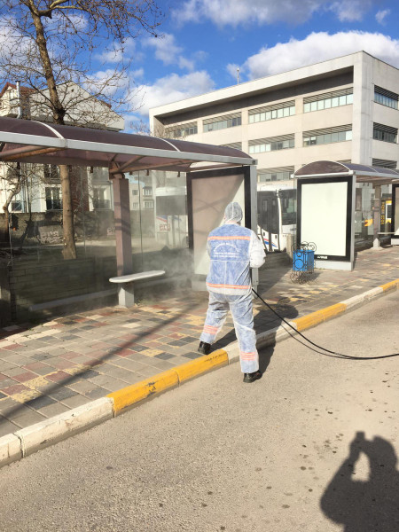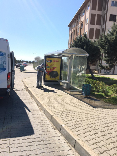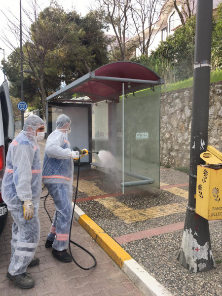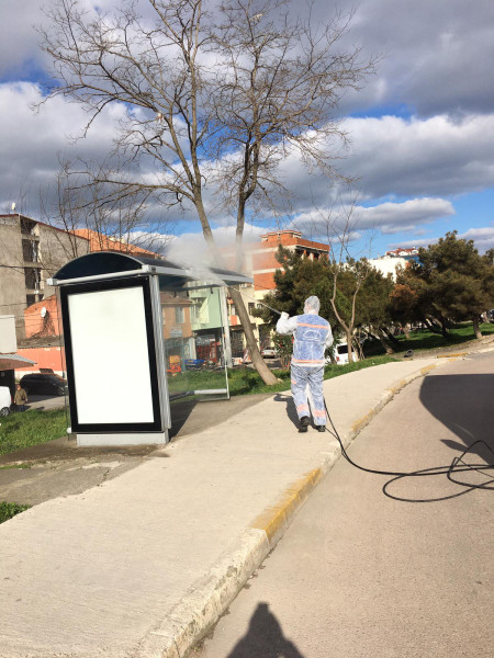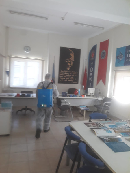 DEZENFEKTE ÇALIŞMALARI TÜM KURUM VE KURULUŞLARDA DEVAM EDİYOR   Vatandaşlarımızın sağlığını tehdit eden COVİD 19 (Corona) virüsüne önlem almak amacıyla, Bandırma Belediyemiz tarafından otobüsler, Resmi hizmet veren tüm kurum ve kuruluşlar, Aile Sağlık Merkezleri, duraklar, parklar vatandaşlarımız için risk oluşturabilecek tüm alanlar dezenfekte çalışması yapılarak ilaçlanmaya devama ediyor.   İlaçlama çalışmaları ara verilmeden devam edecek olup, hemşehrilerimizin sağlığı için gerekli önlemler alınmaktadır. Bu kapsamda Bandırma Belediyesi’nin kentimizde vatandaşlarımıza hizmet eden tüm kapalı ve açık alanların hepsinin düzenli olarak dezenfekte edilmesi planlanmıştır.