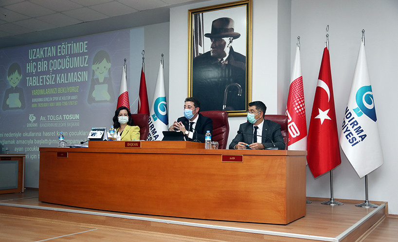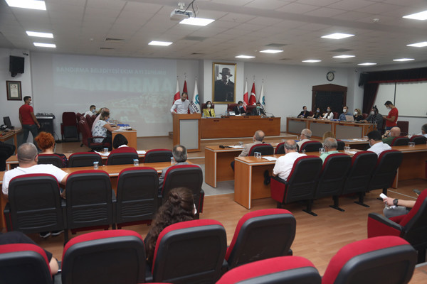 EKİM AYI MECLİS OTURUMU, BELEDİYE MECLİS SALONUNDA GERÇEKLEŞTİ   Bandırma Belediyesi Ekim Ayı Meclis Toplantısı, Belediye Başkanı Av. Tolga Tosun başkanlığında gerçekleşti.   Toplantı ilk olarak Başkan Tolga Tosun tarafından geçmiş aya ait hizmet ve çalışmaların yer aldığı bir sunumla başladı. Sunumda Bandırma Belediyesi'nin son bir ay içersin de yerine getirdiği hizmet ve çalışmalar hakkında meclis üyelerine bilgi verildi.   Sunumun ardından geçmiş gündeme ait tutanağın okunmasına ve yeni gündem maddelerinin görüşülmesine geçildi. Müdürlüklerden gelen gündem maddelerin görüşülmesinin ardından Ekim Ayı Meclis Toplantısı tamamlandı.   Toplantının ardından Bandırma Belediyesi'ne 35 yıl hizmet vermiş memur emeklisi Metin Akıncı'ya Başkan Av. Tolga Tosun tarafından hizmetlerinden dolayı teşekkür plaketi takdim edildi.