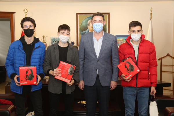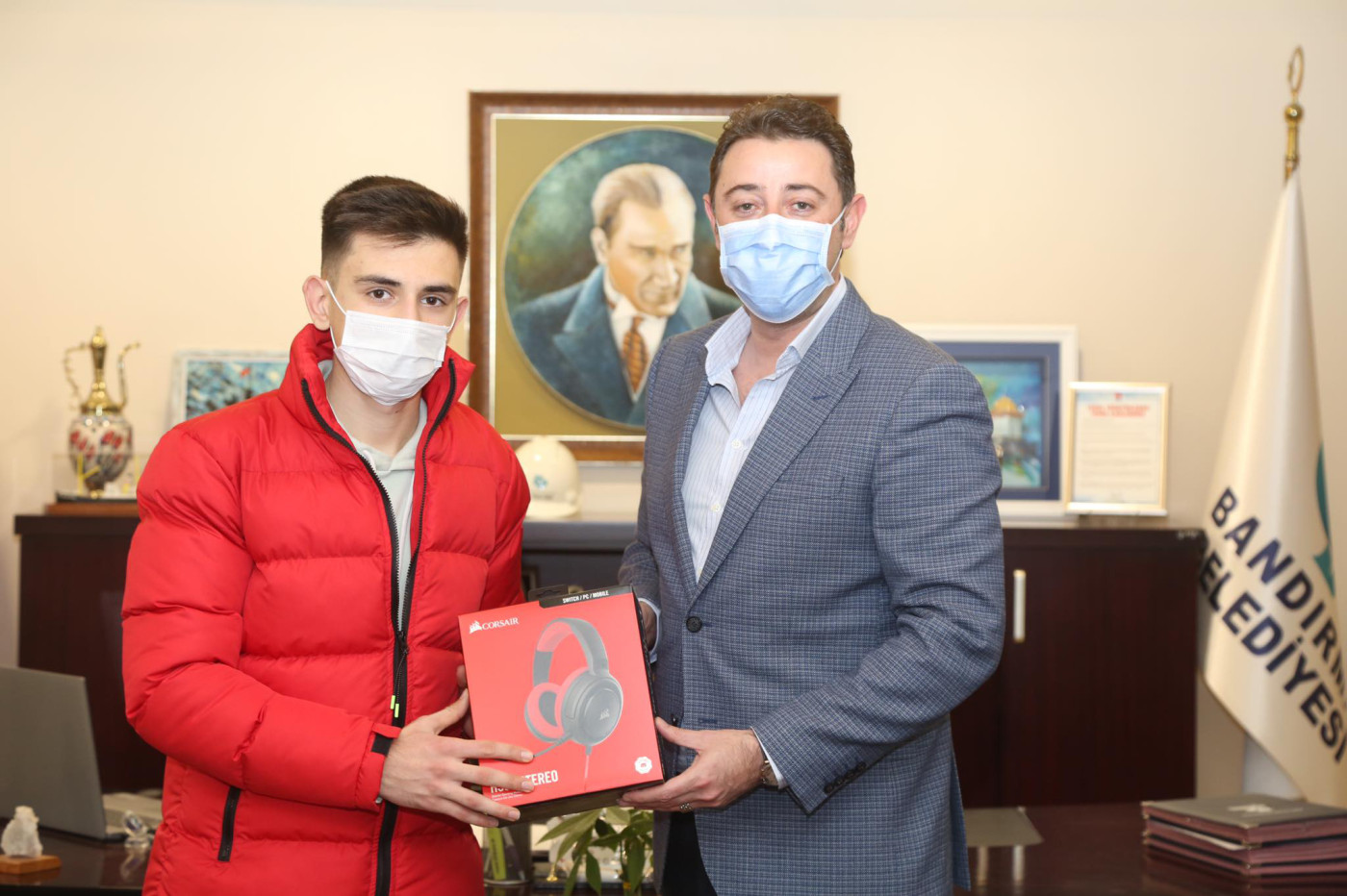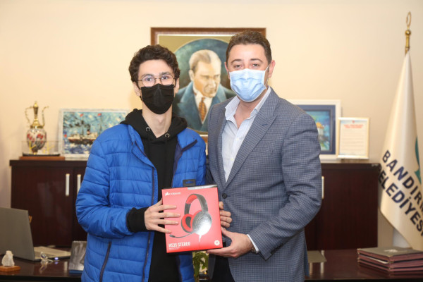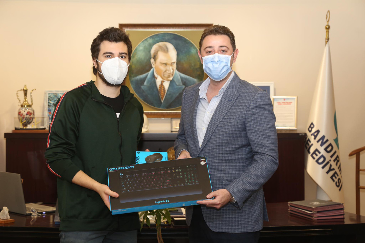ESPOR TURNUVASINDA DERECEYE GİRENLERİN ÖDÜLLERİ VERİLDİ   Bandırma Belediyesi tarafından 16-18 Ocak tarihleri arasında sanal ortamda gerçekleştirilen 33 Takım, 69 Oyuncunun katıldığı ESPOR Turnuvasında, League of Legend (LOL) oyun kategorisinde dereceye giren takımların ödüllerini Belediye Başkanı Av. Tolga Tosun takdim etti.   Birinci olan takım; BEAYİB ve takımın üyeleri; İbrahim Kul, Berent Bugay Börklü, Yağız Can Erkoç. İkinci olan takım; EĞLENMEYE GELDİK ve takım üyeleri: Emirhan Keskin, Efe Oruçoğlu, Erdoğan Birgen.