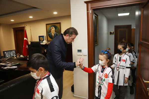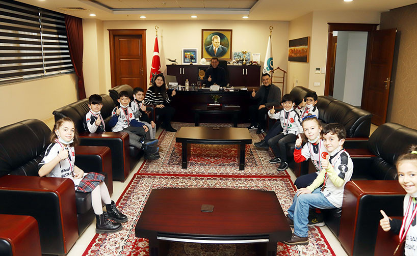 FEMAT SATRANÇ KULÜBÜ’NDEN TÜRKİYE ŞAMPİYONASI ÖNCESİ ZİYARET   FEMAT Satranç Kulübü satranç sporcuları ve antrenörleri Belediye Başkanı Av. Tolga Tosun’u makamında ziyaret etti.   FEMAT Satranç Kulübü, 25 kişilik takımıyla katıldığı Balıkesir’deki turnuvada ilk 10 sporcu sıralamasına girdiler ve ödül aldılar. Türkiye Şampiyonası öncesi Belediye Başkanına ziyarette bulunan FEMAT antrenör ve sporcular, verilen destek için teşekkür ederek, şampiyonluk için mücadele edeceklerine söz verdiler.   Belediye Başkanı Av. Tolga Tosun: “FEMAT Satranç Kulübünün siz genç sporcularına ve antrenörlerine yürekten güveniyorum. Bandırma’yı başarıyla temsil ediyor, aldığınız yüksek derecelerle hepimizin gurur kaynağı oluyorsunuz” dedi.   Ziyaret sonunda Başkan, FEMAT satranç sporcularına teşekkür ederek her birine hediye takdim etti.