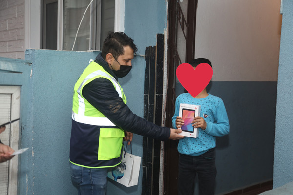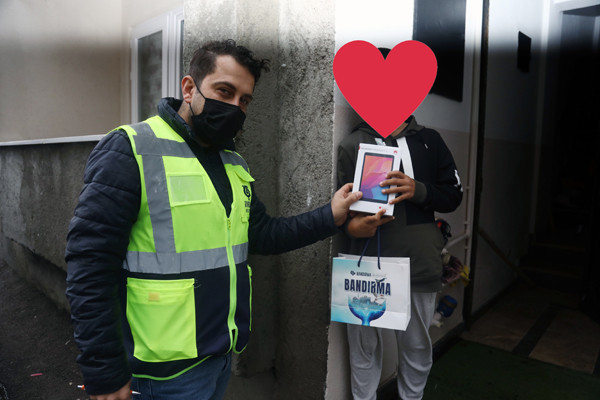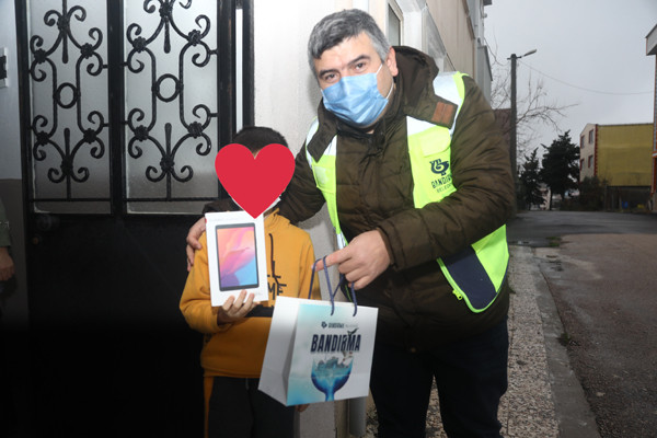 HALKIMIZIN HEDİYELERİ ÇOCUKLARIMIZA DAĞITILDI   Pandemi nedeniyle okula gidemeyen ve uzaktan eğitimden yararlanma imkanı olmayan öğrencilerimize derslerinden geri kalmaması için başlattığımız bağış kampanyası meyvelerini verdi. Halkımızın desteğiyle alınan tabletlerin dağıtımı Belediye Başkanı Av. Tolga Tosun’unda katılımı ile gerçekleşti. Kaymakamlık ile koordineli bir şekilde oluşturulan listelerde yer alan çocuklarımıza tabletler belediye ekiplerince teslim edildi.   Başkan Tolga Tosun "Bandırma Belediyesi olarak pandemi döneminde mümkün olduğunca çocuklarımızın yanında olmaya özen gösteriyoruz. Kaymakamlığımız ile koordineli bir şekilde ihtiyaç sahibi çocuklarımızı tespit ederek eğitimlerinden geri kalmamaları için tabletlerini evlerinde teslim ediyoruz. Bandırma halkının desteğiyle elde ettiğimiz bu tabletlerle ülkemizin aydınlık geleceği olan çocuklarımız için eğitimde fırsat eşitliği sağladığımızı düşünüyorum" dedi.