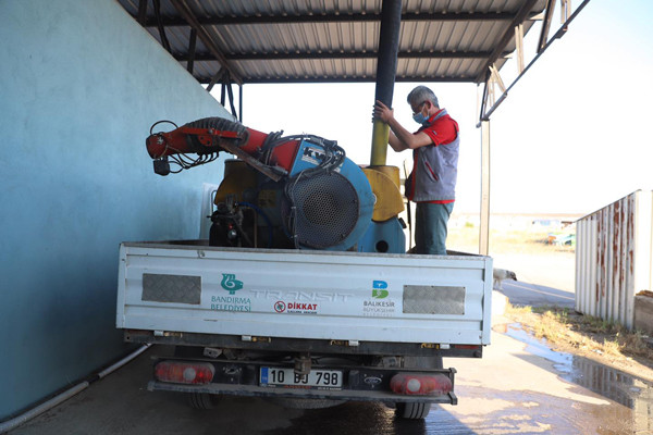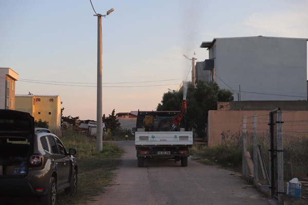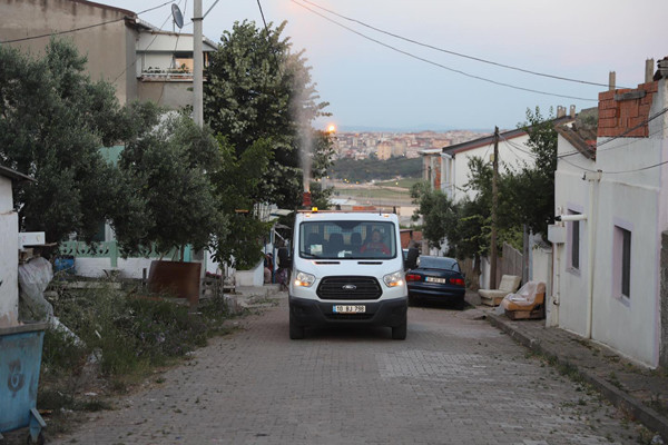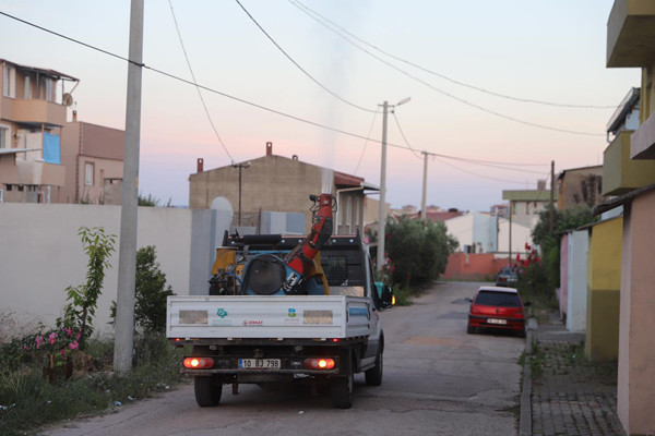 İLAÇLAMA ÇALIŞMALARI KENT MERKEZİNDE YOĞUNLAŞTI   Bandırma Belediyesi ekipleri tarafından, sıcakların artmasıyla birlikte üremeye başlayan sivrisinek ve karasinek larvalarının oluşumunu engellemek amacıyla ilaçlama çalışmaları kent merkezinde yoğunlaştı.   Vatandaşların haşere ve sinekten uzak bir yaz geçirmesi için Belediye Başkanı Av. Tolga Tosun’un talimatı ile başlatılan çalışma kapsamında şehrin birçok noktasında ilaçlama yapan ekipler, yaz mevsiminin gelmesiyle birlikte çoğalan haşerelere ve zararlı böceklere karşı ilaçlama çalışmalarını gece gündüz sürdürüyor.   Buna bağlı olarak sulak alanlar, dere yatakları, şehir merkezi ve tüm mahallelerde sivrisinek ve karasinek ilaçlaması devam ederken, ilaçlama çalışmaları tüm kent genelinde aralıksız olarak devam edecek.