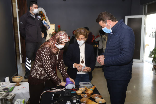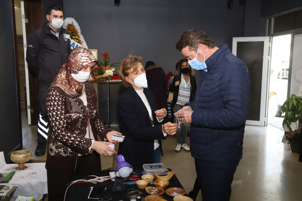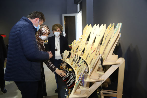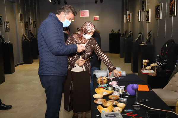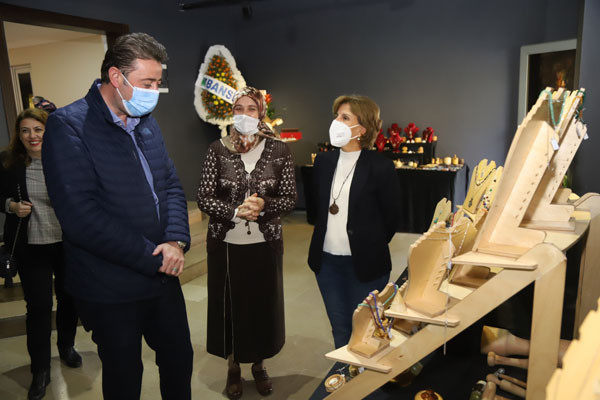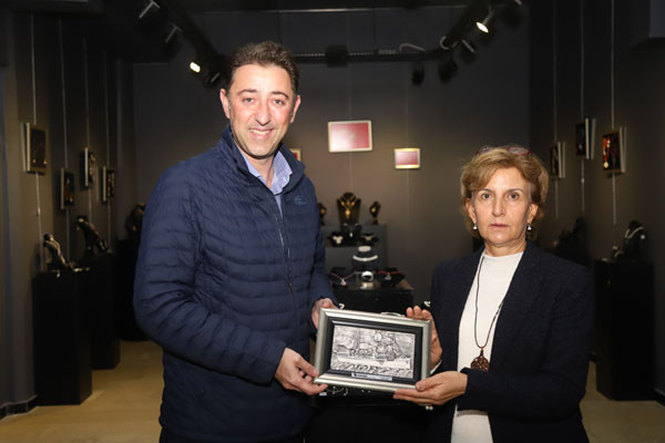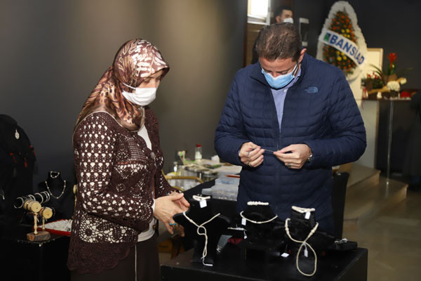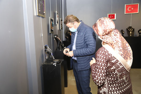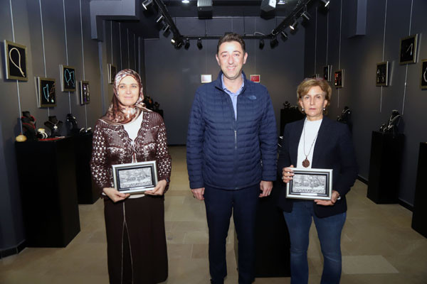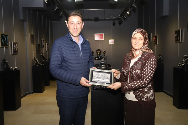 “KAZAZİYA TAKI SERGİSİ” MELİH ÇINAR SERGİ SALONUNDA AÇILDI Belediye Başkanı Av. Tolga Tosun Barış Manço Kültür Merkezi Melih Çınar Sergi Salonunda Bandırma Belediyesi Kültür Sanat Etkinlikleri kapsamında Halime Çalışkaner ve Sevgül Demir tarafından açılan Kazaziye Takı Sergisini ziyaret etti. Sergi Gezisi sırasında Halime Çalışkaner ve Sevgül Demir takı tasarımlarını hangi aşama ve işlemlerden geçirerek yaptıklarını Başkan Tolga Tosun’a aktardılar. Takı tasarımcılarına böylesine güzel bir takı sergisini Bandırmalılarla buluşturdukları için teşekkür ederek çalışmalarında başarılar diledi. Belediye Başkanı Av. Tolga Tosun sergi gezisi sonunda Halime Çalışkaner ve Sevgül Demir’e teşekkür plaketi takdim etti.