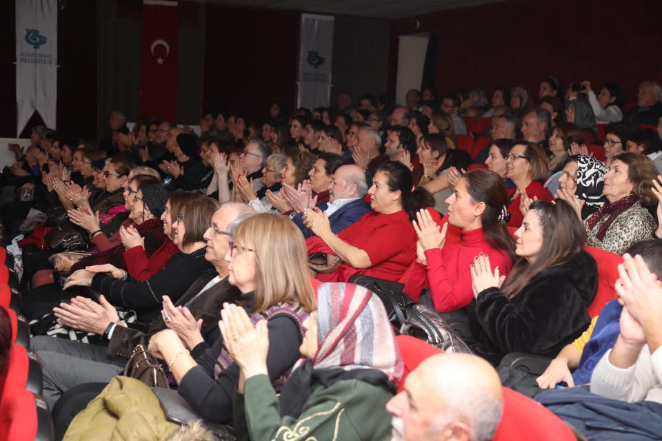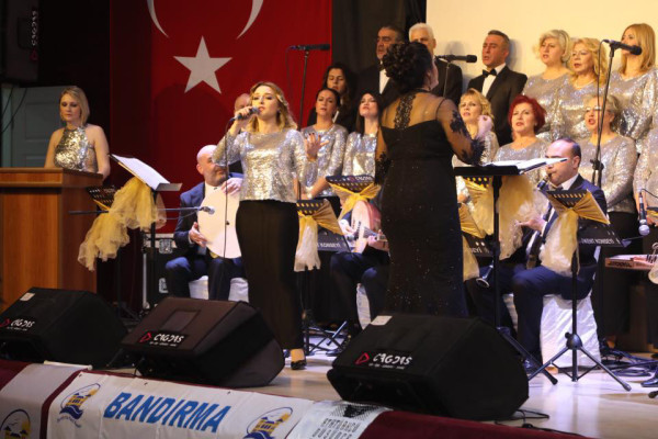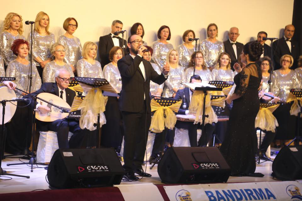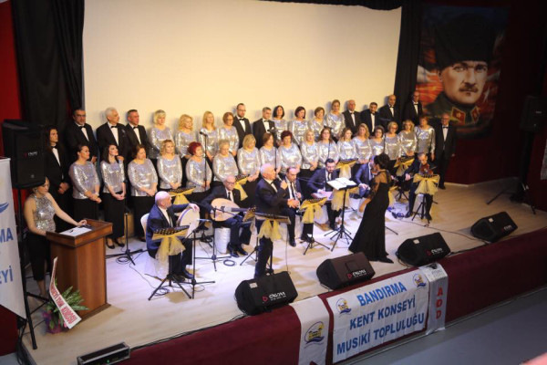 KENT KONSEYİ MUSİKİ TOPLULUĞU’NUN YENİ YIL KONSERİ BÜYÜK İLGİ GÖRDÜ Bandırma Belediye Başkanı Av. Tolga Tosun Barış Manço Kültür Merkezinde, Kent Konseyi Musiki Topluluğu tarafından düzenlenen yeni yıl konserine katıldı. Tasavvuf Musiki Ustası Yusuf Nalkesen'in bestelerinin icra edildiği gecede 45 kişiden oluşan saz heyeti ve solistler konser boyunca birçok eser seslendirdi. Konser bitiminde Kent Konseyi Musiki Topluluğu dinleyicilerden tam not aldı. Konser sonunda konser gelirlerinin Atatürkçü Düşünce Derneğine bağışlanacağını belirten; Atatürkçü Düşünce Derneği Başkanı Serdar Polat, Kent Konseyi Başkanı Murat Ergöz ve CHP İlçe Başkanı Hüseyin Bahar, Kent Konseyi Musiki Topluluğuna böyle güzel bir musiki şöleni ile Bandırmalıları buluşturdukları için teşekkür ederek gecenin anısına çiçek takdim etti. Konsere Belediye Meclis Üyeleri Adil Levent Coşkun, Merve Polat, sivil toplum örgütlerinin temsilcileri ve musikiseverler katıldı.