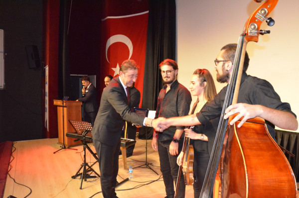 Bandırma Belediyesi, Bandırma Kent Konseyi ve Çınarlı Çağdaş Gençlik Derneğinin iş birliğiyle düzenlenen Trio-Klasik Müzik Konseri Bandırmalılarla buluştu. 29 Ekim Cumhuriyet Bayramı’nın 96.yıl coşkusu nedeniyle düzenlenen Cumhuriyet Konseri’nde Keman’da Gökçem Bahar, Piyano’da İbrahim Güler ve Kontrbas’ta ise Tarkan Tarıer salonu dolduran Bandırmalılara keyifli bir klasik müzik ziyafeti sundu. Barış Manço Kültür Merkezinde saat 20:30’da başlayan konserde Belediye Başkanı Av. Tolga Tosun, CHP İlçe Başkanı Hüseyin Bahar, Kent Konseyi Başkanı Dr. Murat Ergöz, Çağdaş Gençlik Derneği Başkanı Eyüp Demirezen, ADD Bandırma Şube Başkanı Serdar Polat yer aldı.    Cumhuriyetimizin 96. Yıl coşkusu nedeniyle düzenlenen Klasik Müzik konserinin oldukça anlamlı bir etkinlik olduğunu belirten Belediye Başkanı Av. Tolga Tosun, başta sanatçılar olmak üzere konserde emeği geçek herkese teşekkür etti.