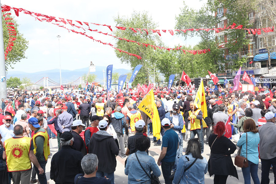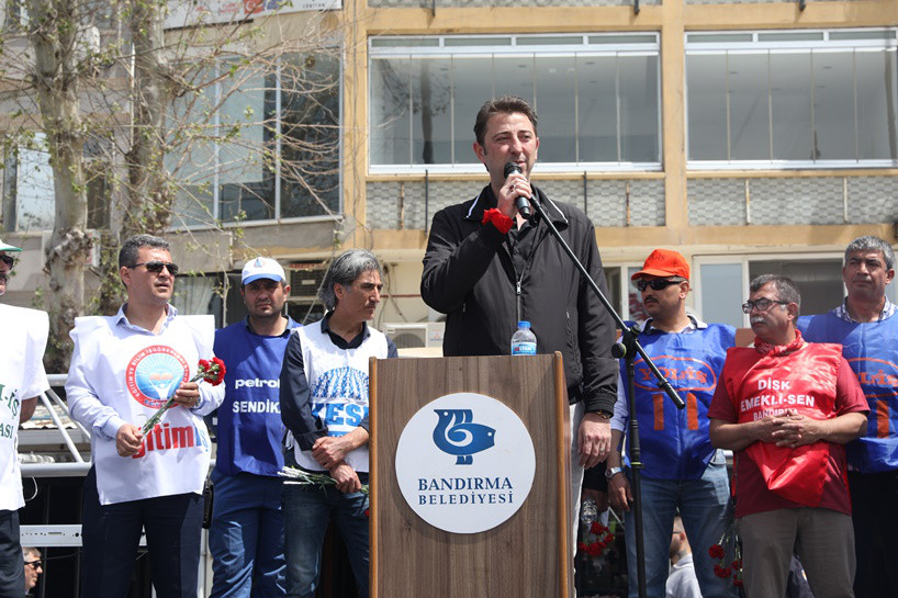 Kentimizde düzenlenen 1 Mayıs Emek ve Dayanışma Günü mitingine yaklaşık 2 bin kişi katıldı. İDO İskelesi önünden başlayan kortej yürüyüşü Cumhuriyet Meydanı’nda sona erdi. Cumhuriyet Meydanında İşçi ve emekçileri selamlayarak konuşmasına başlayan Belediye Başkanımız Av. Tolga Tosun: “Kortejimizi bir az önce önünde çocuk işçilerimiz vardı. Kendi gençliğim çocukluğum aklıma geldi. 11 yaşında iş hayatına babamın yanında başladım. Çay söylemekle başladık yaşımız ilerledi inşaatlarda çimento taşımak, tuğla taşımakla devam etti. O günden bugüne işçi, emekçi abilerimle beraber büyüdüm. 2004 senesinde Avukat oldum. Geçmiş dönemden bugüne sizlerin yaşadığı sıkıntıları bildiğim için işçi ve emekçi abilerimin kardeşlerimin haklarını savunabilmek adına iş hukuku konusunda uzmanlaşmaya çalıştım. Elimden geldiğince sizlerin haklarını mesleki olarak savunmak için var gücümle çalıştım. Bugün karşınızda Bandırma Belediye Başkanı olarak görev almaktayım. Sizlerin haklarını en üst düzeyde savunan bir Belediye Başkanı olacağımın sözünü veriyorum. Beni bir kardeşiniz, abiniz, arkadaşınız olarak görün. Tüm tarımda, sanayide, hizmette ve her sektörde çalışan işçi abilerimin, ablalarımın ve kardeşlerimin yanında olup kucak açıp yanlarında olacağımdan emin olabilirsiniz. Şimdi susma sırası bende konuşma sırası sizde. 1 Mayıs İşçi Bayramınız kutlu olsun. Bandırmamıza hayırlı olsun” dedi.