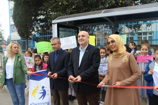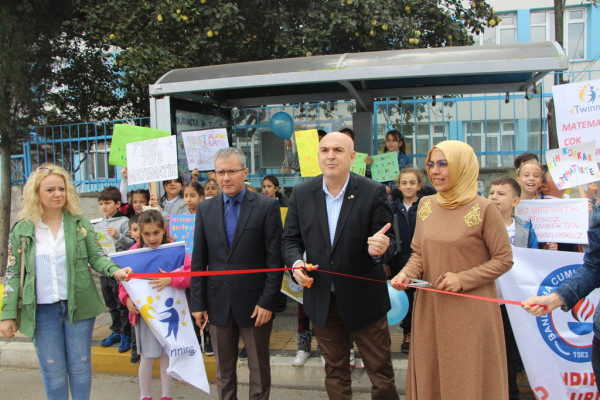 KENTİMİZDE “DURAKTA MATEMATİK PROJESİ” BAŞLADI Kentimizde “Durakta Matematik Projesi” hayata geçirildi. Bandırma Cumhuriyet İlkokulu 3/G Sınıfı öğrencileri öğretmenleri Raziye Güneş ‘in rehberliği ile ilçemizde, Milli Eğitim Bakanlığı Yenilik ve Eğitim Teknolojileri Genel Müdürlüğü bünyesinde kurulmuş olan uluslararası e-Twinning Projesi kapsamında “Durakta Matematik” uygulamasını hayata geçirmek için otobüs durağında etkinlik düzenlendi. Proje kapsamında matematiğin kitap, okul, öğrenci ve öğretmenim dörtgeninden çıkarıp 7'den 70'e hayatın her alanına yayılması hedefleniyor. Matematik öğretmeni Mukaddes Karip ve eşi Mehmet Karip öğretmenlerimizin kuruculuğunu yaptığı, 7’den 70’e herkese matematiği sevdirmek, matematik korkularını gidermek için kendi çizimlerinden oluşan bir e-Twinning projesi kapsamında il ve ilçelerin otobüs duraklarına karikatür ve resimli matematik işlemlerinin yer aldığı afişler asılarak herkesin faydalanması ve matematik korkusunun yenilmesi amaçlanmıştır. Proje kısa zamanda her il ve ilçeden gönüllü öğretmenlerin katılımıyla proje çalışması geniş kitlelere ulaştı. Türkiye de 81 il ve ilçelerde, Arnavutluk, Romanya, Azerbaycan ve Almanya da çalışmalar başladı. Çalışmalar proje ortaklarının yaşadığı şehirlerdeki duraklara afişler asıldı ve hız kesmeden asılmaya devam ediyor.  “Durakta Matematik” projesi uygulamasını Paşakonak Mahallesi Hamit Kaplan Caddesi üzerinde bulunan otobüs durağında Bandırma Belediye Başkan Yardımcısı Ozan Onur ve Cumhuriyet İlkokulu Müdürü Mustafa Akgül kurdele keserek birlikte başlattı. Açılışta konuşan Belediye Başkan Yardımcısı Ozan Onur, “Böyle bir projeye imza attıkları için ilçe Milli Eğitim Müdürlüğü’nü ve öğretmenlerimizi kutluyorum. Bu örneğin ülkemizdeki ve bölgemizdeki diğer okullarda da sürmesini ve öğrencilerimizin bu olanaktan faydalanması bir yerel yönetici olarak en büyük temennimiz, inşallah öylede olacaktır” dedi.