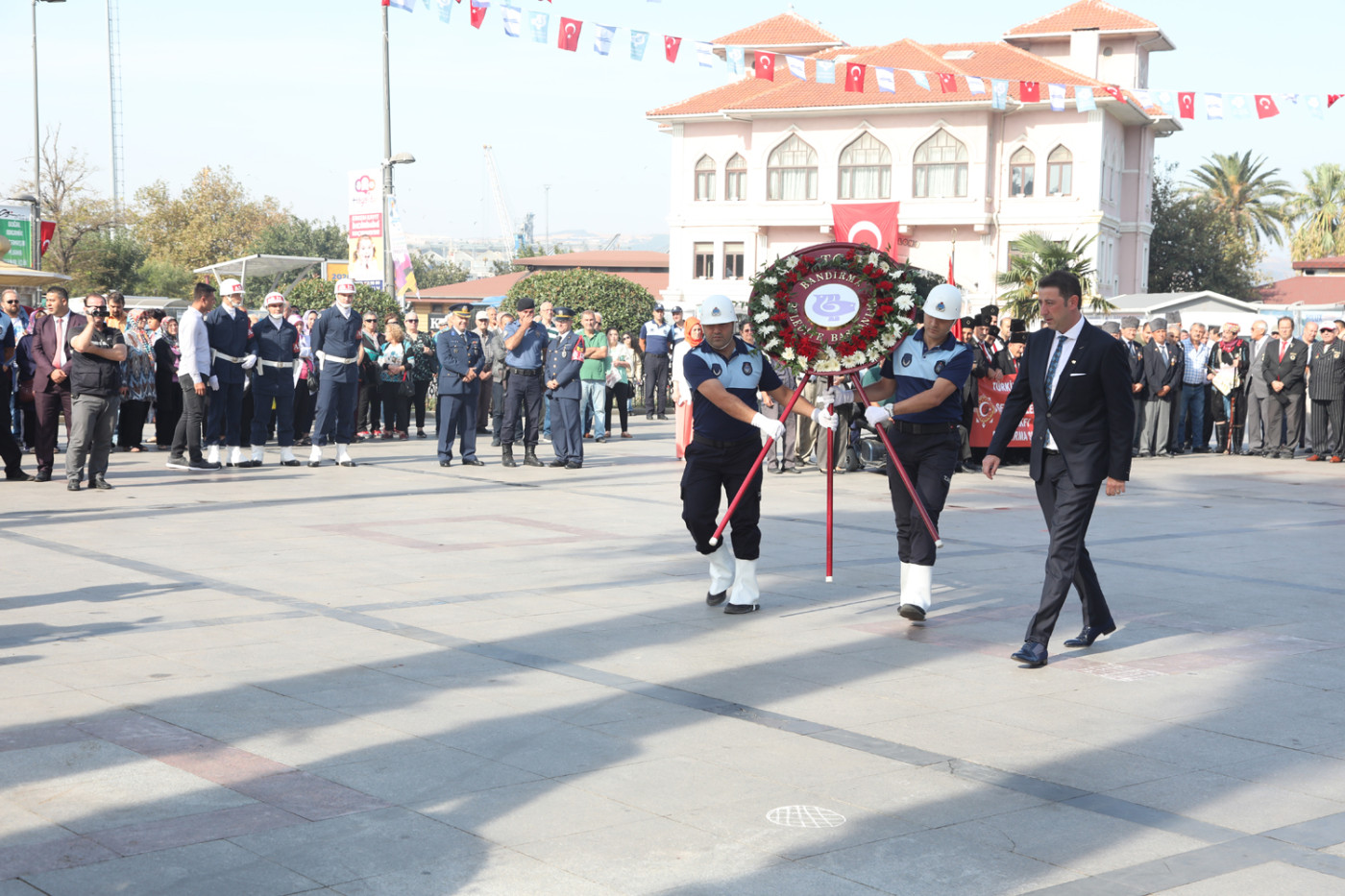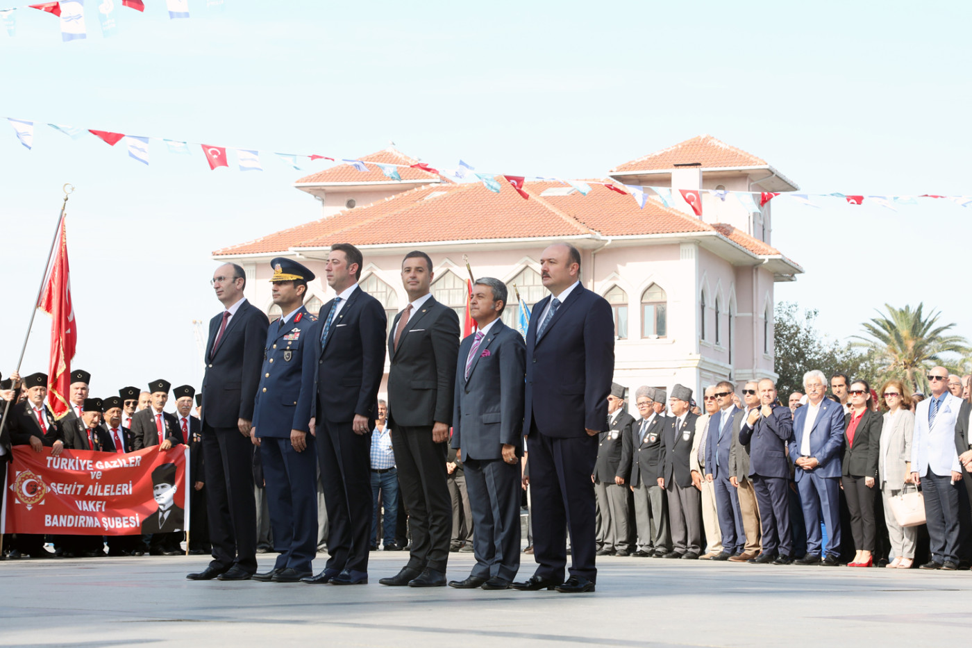 KENTİMİZİN DÜŞMAN İŞGALİNDEN KURTULUŞUNUN 97. YIL DÖNÜMÜ BİR DİZİ TÖRENLE KUTLANDI   Bandırma’nın düşman işgalinden kurtuluşunun 97. Yıldönümü kentimizde törenlerle kutlandı. Cumhuriyet Meydanındaki törenlere; İlçe Kaymakamı Günhan Yazar, Garnizon Komutanı Tuğgeneral Oğuz Okuyucu, CHP Balıkesir Milletvekili Ahmet Akın, Belediye Başkanı Av. Tolga Tosun, Cumhuriyet Başsavcısı Önder Yeniçeri, Onyedi Eylül Üniversitesi Rektörü Prof. Dr. Süleyman Özdemir, gaziler, dernekler, sivil toplum örgütleri, siyasi parti temsilcileri ve öğrenciler katıldı.   Saygı duruşu ve İstiklal Marşının okunmasının ardından Atatürk Anıtına çelenk konuldu. Günün anlam ve önemini belirten konuşmayı yapan Belediye Başkanımız Av. Tolga Tosun: “Kurtuluş savaşımızın 100. yılındayız. 19 Mayıs 1919’da, Mustafa Kemal’i yüreğindeki hürriyet ateşi, ruhundaki kararlılık ve cesaretiyle, Samsun’a ulaştıran vapurun adında biz varız. Tam 97 yıl önce bugün, 17 Eylül 1922’de, Yarbay Vecihibey komutasındaki kahramanlar, kalan son palikarya kırıntılarını da, aşığı olduğumuz bu kentten, Bandırma Ayyıldız tepeden denize dökmüştür. Ayyıldız Tepede kahramanca savaşan, düşmana son kurşunu sıkan ve şehit olan, başta Yarbay Vecihi Bey olmak üzere 80 şehidimizi rahmet, minnet ve saygıyla anıyorum. Bandırmamızın düşman işgalinden kurtuluşunun 97. yılını tüm içtenliğimle kutluyorum” dedi.   Cumhuriyet Meydanındaki törenler, Bandırma Belediyesi Halk Oyunları ekibinin gösterileri ve öğrencilerin okuduğu şiirler ile sona erdi.   Cumhuriyet Meydanındaki törenin ardından saat 11.30’da, Ayyıldız Tepe anıtında; Kurtuluş Mücadelesinde canlarını veren aziz şehitlerimiz için askeri manga saygı atışı yaptı. Kuran-ı Kerim okunmasının sonrasında vatandaşlara pilav ve ayran ikramı ile törenler sona erdi.