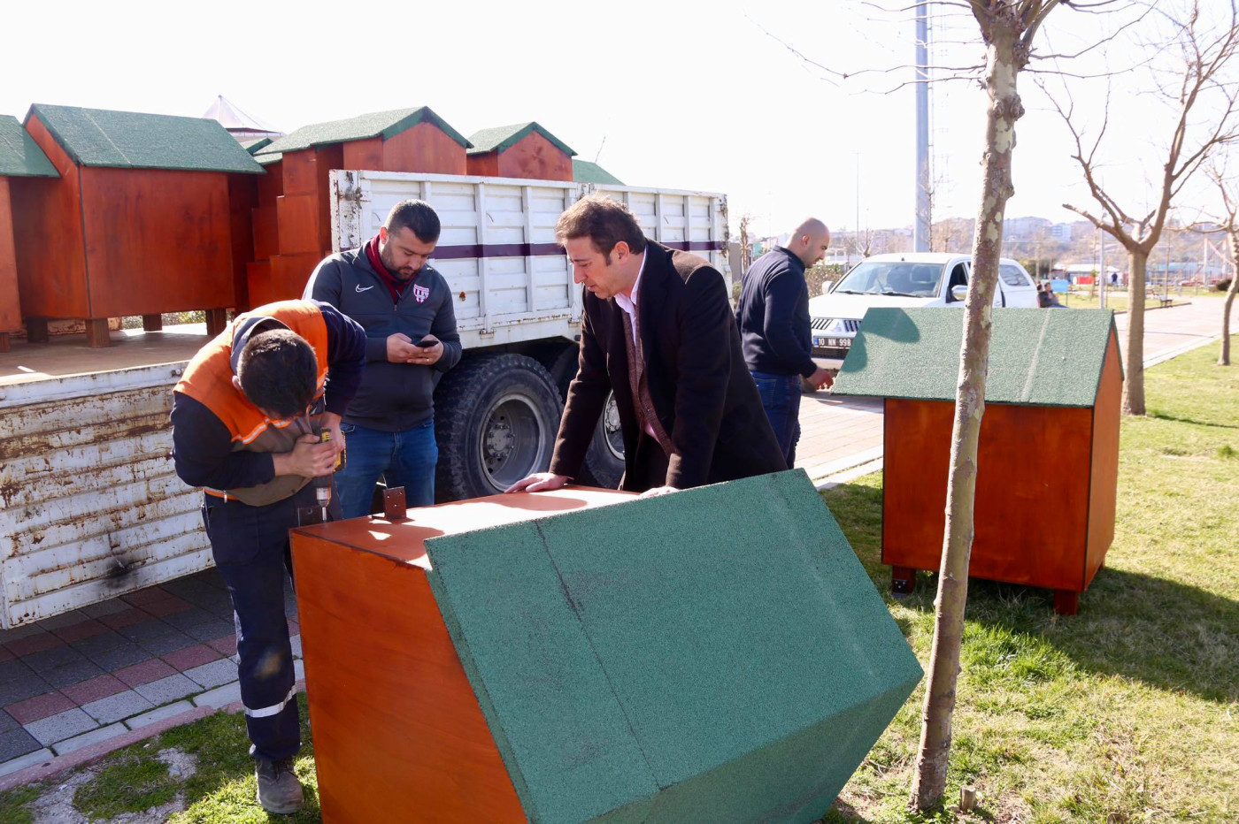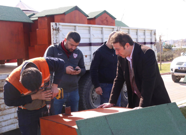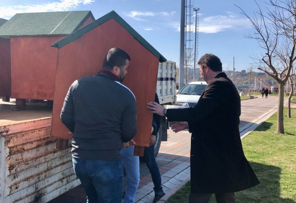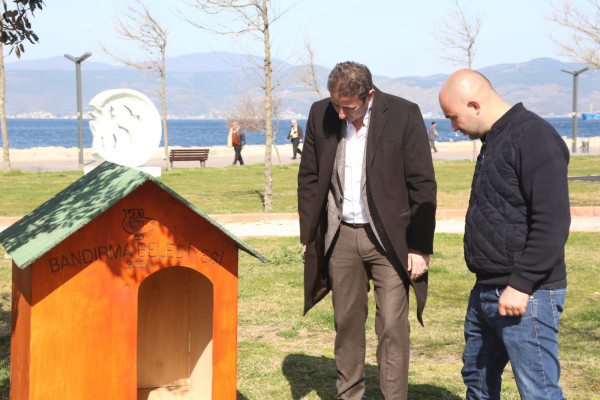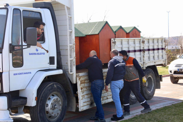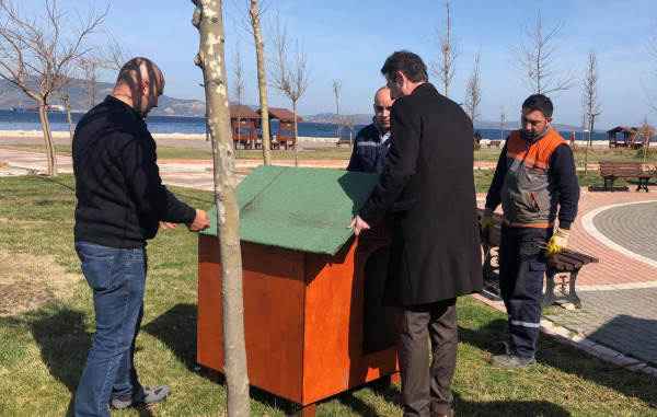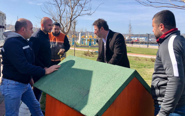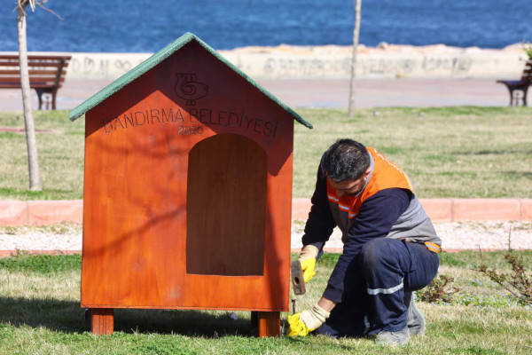 KÜÇÜK DOSTLARIMIZ YUVALARINA KAVUŞTU   Bandırma Belediyesi Şantiyesinde sokak hayvanlarının barınması için üretilen yeni kulübeler ve kedi evleri, sahil bandı ve diğer beslenme alanlarına Belediyemiz ekiplerince monte edildi. Ekipler kulübeler ve kedi evlerini ilk olarak Belediye Hayvan Barınağına monte ederken diğer kulübeler ise Sahil Bandı, Çelebi Liman Önü, Ziraat Bahçesi, Hürriyet Parkı, Özgürlük Siteleri, Livatya, Levent Mahallesi Parkı, Edincik ve Hasan Atlı Okulu karşısı ve İhsaniye Mahallesi park alanındaki uygun alanlara yerleştirildi.  Montaj çalışmalarını yerinde takip eden Belediye Başkanı Av. Tolga Tosun, Belediye Şantiyemizde daha düşük maliyetle ürettiğimiz su ve rüzgar geçirmeyen köpek ve kedi evlerini kentimizin çeşitli noktalarına koyarak hayvanlarımızın barınmasına katkı sağladıklarını söyledi. Başkan Tolga Tosun: “Yeni kulübeler ve kedi evleri, sokak hayvanlarının yağmurlu ve soğuk havalarda daha güvenli ve korunaklı bir şekilde barınmalarını sağlamak amacıyla üretildi. İlk etapta 50 adet köpek kulübesi ve 10 adette kedi evinin yapımı Belediyemiz şantiyesinde tamamlanırken sonrasında ihtiyaç alanlarına göre yeni kulübelerin üretimine devam edilecek. Bu noktada vatandaşlarımızdan da tüm kamu malına karşı duyarlı olmalarını ve zarar verenleri uyarmalarını rica ediyorum. Kentimize, ülkemize elbirliğiyle sahip çıkacağız” dedi.