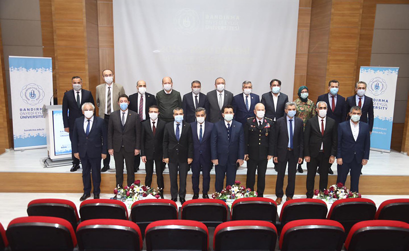 ONYEDİ EYLÜL ÜNİVERSİTESİ 2015 -2020 DÖNEMİ TANITIM VE DEĞERLENDİRME TOPLANTISI YAPILDI   Belediye Başkanı Av. Tolga Tosun, Onyedi Eylül Üniversitesi 2015 -2020 Dönemi Tanıtım ve Değerlendirme Toplantısına katıldı.   Toplantı ile ilgili değerlendirmede bulunan Belediye Başkanı Av. Tolga Tosun: “Onyedi Eylül Üniversitesi Rektörü Prof. Dr. Süleyman Özdemir’e bilgilendirici sunumu için çok teşekkür ediyorum. Üniversitemiz bölgemizin en büyük değerlerinden biri ve Bandırma Belediyesi olarak üniversitemiz ile her zaman işbirliği içerisinde olmaya devam edeceğiz” dedi.   Toplantıya Balıkesir Valisi Hasan Şıldak, Balıkesir Milletvekilleri Yavuz Subaşı, Adil Çelik, Belgin Uygur, Ensar Aytekin, Büyükşehir Belediye Başkanı Yücel Yılmaz, Bandırma Kaymakamı Günhan Yazar, Gönen Kaymakamı Arslan Yurt, Bandırma Başsavcısı Cüneyt Demirdağ, Ağır Ceza Mahkemesi Başkanı Mehmet Tarakçı katıldı.
