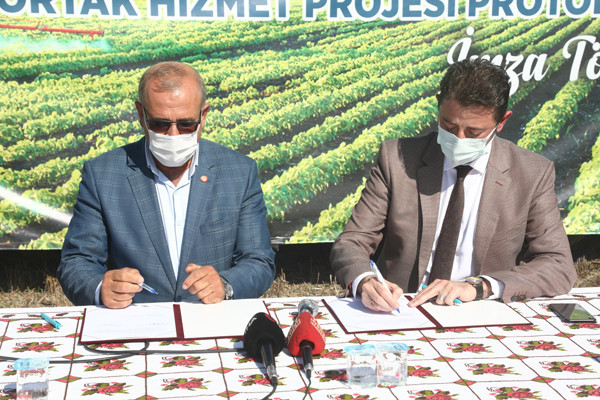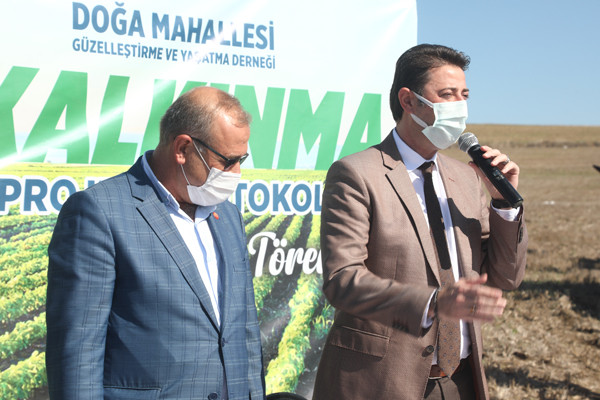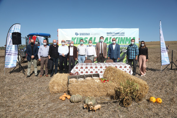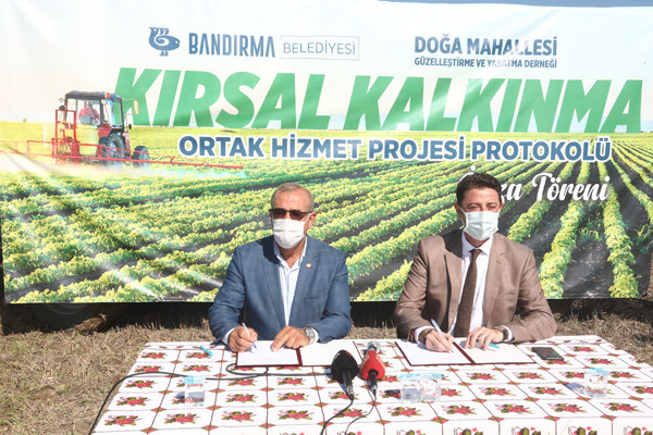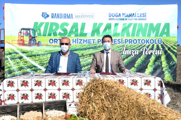 ÖRNEK PROJE İÇİN İMZALAR ATILDI   Bandırma Belediyesi kırsal kalkınmaya destek olmak amacıyla toplam 662 dönümlük Belediyemize ait tarım arazisini bugün imzalanan protokolle Doğa Mahallesi Güzelleştirme ve Yaşatma Derneği’ne 1 yıllığına kiraya verdi. Belediye Başkanı Av. Tolga Tosun ve Doğa Mahallesi Muhtarı Mustafa Pınar arasında imzalanan protokol kapsamında ilk etapta nohut ve fasulye ekimi gerçekleştirilecek ve Bandırma Belediyesi toplam mahsulden 18 ton pay alacak. Hasatla birlikte toplanan ürünlerin daha sonra Sosyal Yardım Çalışmaları kapsamında ihtiyaç sahibi olan ailelerle paylaşılması hedefleniyor.   Kırsal kalkınma için örnek bir proje hayata geçiriliyor.   Ülkemizde Sosyal Demokrat Belediyelerin büyük önem verdiği Tarımsal Üretim Çalışmalarına Bandırma Belediyesi örnek bir projeyi hayata geçirerek Doğa Mahallesinde bulunan Belediyemize ait tarım arazilerinin ekilmek suretiyle değerlendirilmesi çalışmalarına hız verdi.   Bu kapsamla Belediyemizin Doğa Mahallesinde bulunan 662 dönümlük tarım arazilerinde başlatılacak olan ekim çalışmalarının ardından belediyemiz toplam mahsulden 12 Ton Koçbaşı Nohut ve 6 Ton Horoz Fasulye almaya hak kazanacak.   Amacımız Sosyal Yardım Çalışmalarında kendi tarım ürünümüzü halkımızla buluşturmak. Kırsalda yapılan bu ekim çalışmalarıyla hem tarımsal üretime katkı sağlanması hem de üretilen tarımsal ürünlerin yine Belediyemizin Sosyal Yardım Çalışmaları kapsamında ihtiyaç sahibi olan ailelerimize dağıtılması amaçlanıyor. Konuyla ilgili açıklamalarda bulunan Belediye Başkanı Av. Tolga Tosun, Belediyemize ait olan tarım arazilerinin değerlendirerek kırsal kalkınmaya destek vermeyi amaçladıklarını belirterek buradan elde edilecek olan ürünleri sosyal yardıma çalışmalarında kullanmak amacıyla tarımsal üretim çalışmalarını başlattıklarını söyledi.   “Tarımsal üretime katkı sunacağız”   Başkan Tolga Tosun: “Ülkemizde sosyal demokrat belediyelerin tarımsal üretime büyük önem verdiğini görüyoruz. Kentimiz de verimli tarım arazileri açısından önemli bir konumda yer alıyor. Ayrıca belediyemize ait üretime uygun birçok tarım arazimiz de mevcut. Bizler de bu arazilerimizi değerlendirmek ve ülkemizdeki tarımsal üretime katkı sunmak amacıyla ilk etapta Doğa Mahallemizdeki toplam 662 dönüm olan arazilerimizi Doğa Mahallesi Güzelleştirme ve Yaşatma Derneği Başkanımız Mustafa Pınar’la bugün imzaladığımız protokolle 1 yıllığına kendilerine kiraladık. Tabi bu arazileri kendilerine para karşılığı değil ürün karşılığı kiraladık. Buradan elde edilecek fasulye ve nohut gibi mahsuller de yine Belediyemizin Sosyal yardım çalışmaları kapsamında ihtiyaç sahibi olan vatandaşlarımıza dağıtılacak.  Bu tarımsal üretim süreci önemli ve uzun bir süreç. Umuyorum ki bu alandaki çalışmalarımızı daha da büyüterek devam ettireceğiz” dedi.