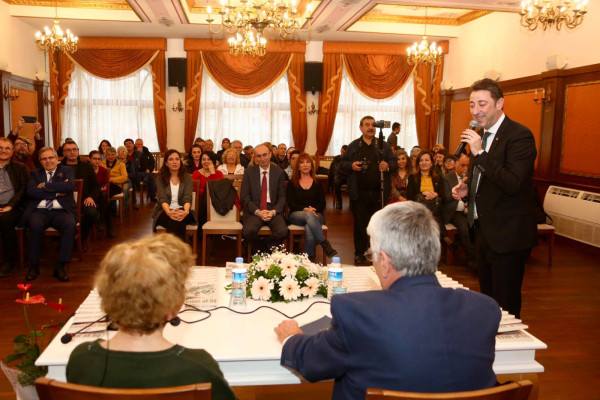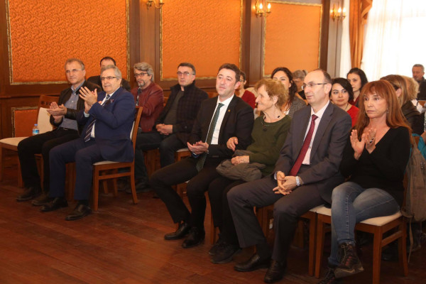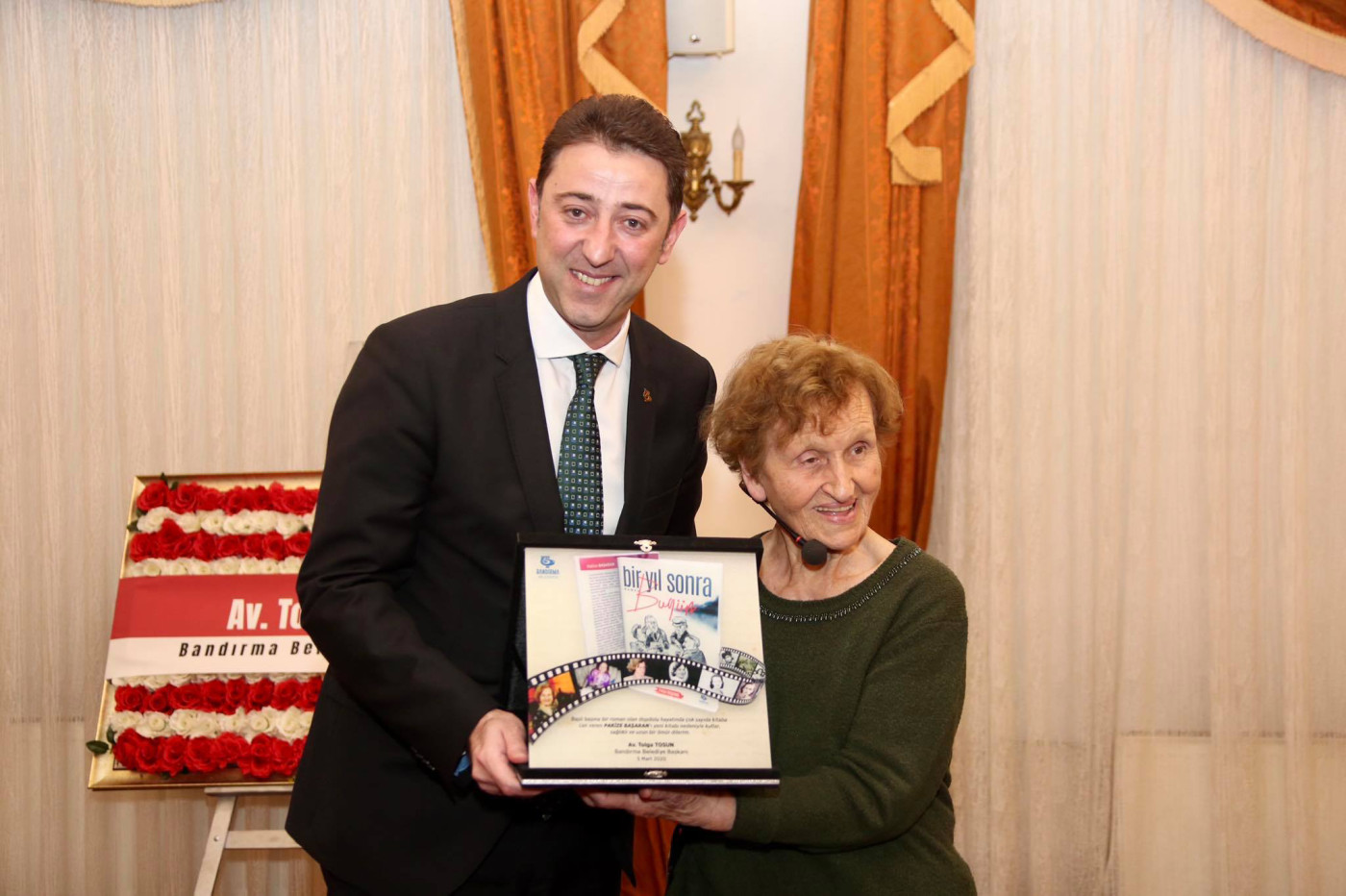 PAKİZE BAŞARAN’IN “BİR YIL SONRA BUGÜN” KİTABI OKUYUCULARI İLE BULUŞTU   Bandırma Belediyesi 8 Mart Dünya Kadınlar Günü Etkinlikleri Kapsamında kentimizin önemli yazarlarından Pakize Başaran’ın “Bir Yıl Sonra Bugün” isimli romanının söyleşi ve imza günü gazeteci yazar Önder Balıkçı’nın moderatörlüğünde Bandırma Nikah Salonunda gerçekleşti.   Söyleşide konuşan Pakize Başaran: “Canım oğlum Tunç Başaran’ın, 18.12.2019 tarihinde aramızdan ayrılması nedeniyle büyük bir ruh çöküntüsü içerisinde iken, Bandırmamızın değerli Belediye Başkanı Sayın Tolga Tosun’un bu romanımı kitaplaştırması ruh sağlığıma bir ilaç gibi geldi. Gerek sevgili Belediye Başkanımıza gerek tüm emeği geçenlere, sonsuz teşekkür ve şükranlarımı sunuyorum” dedi.   Söyleşi sonunda söz alan Belediye Başkanı Av. Tolga Tosun: “Kentimizin değerlerinden Pakize Başaran’ın kitabını basmaktan ve söyleşisine katılmaktan mutluluk duyuyorum. Geçtiğimiz yıl oğlu başarılı yönetmen Tunç Başaran’ı kaybeden Pakize Başaran Bir Yıl Sonra Bugün adlı eseriyle yeniden okuyucularıyla buluştu. Biz de Bandırma Belediyesi olarak kültür ve sanat etkinliklerimize ara vermeden devam edeceğiz” dedi.   Konuşmalar sonunda Pakize Başaran edebiyatsevelerin kitaplarını imzalayarak bol bol hatıra fotoğrafı çektirdi.