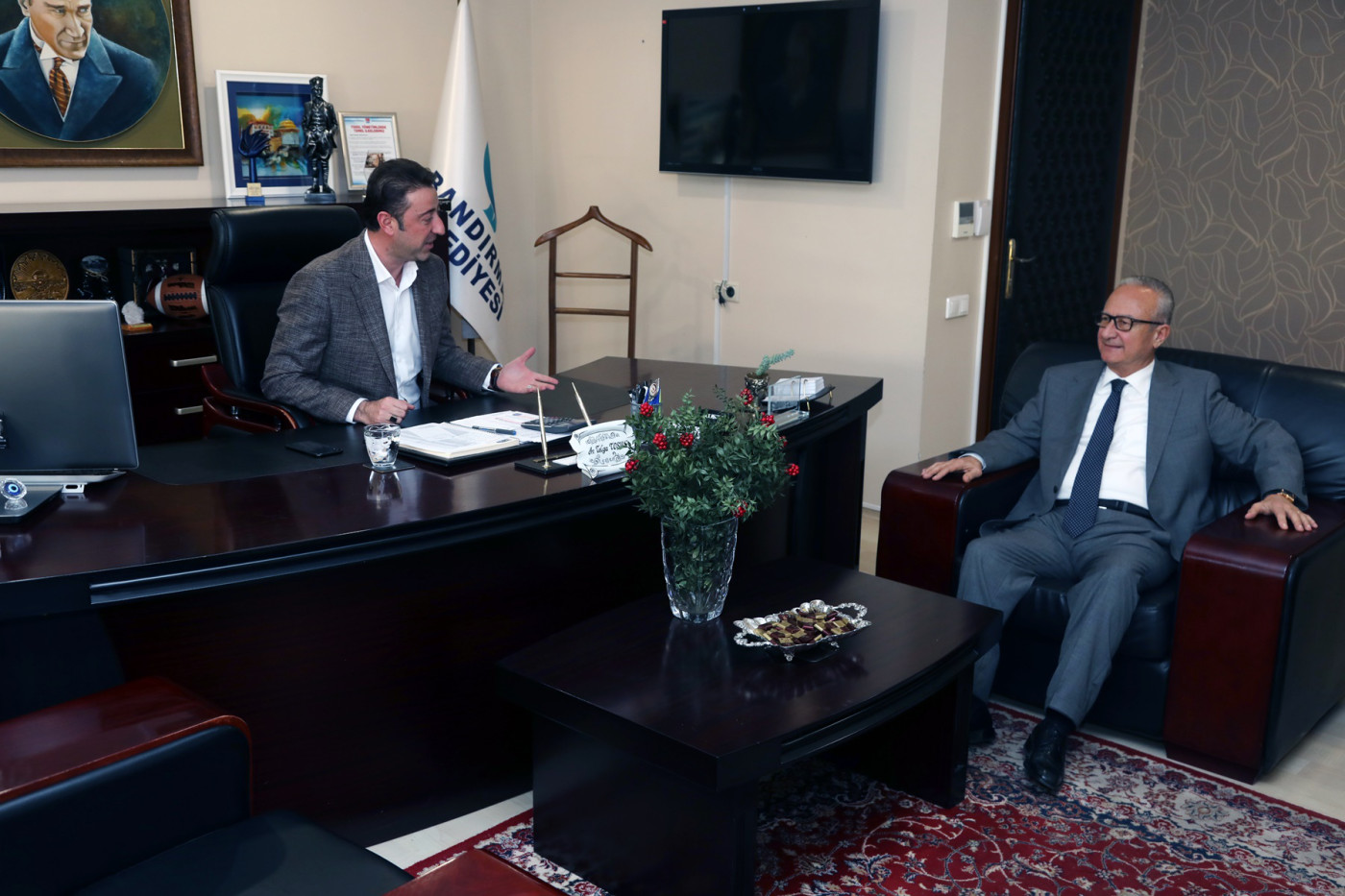 SEDAT PEKEL BELEDİYE BAŞKANI AV. TOLGA TOSUN’U ZİYARET ETTİ. DUAYEN BAŞKANDAN GENÇ BAŞKANA TAM NOT.