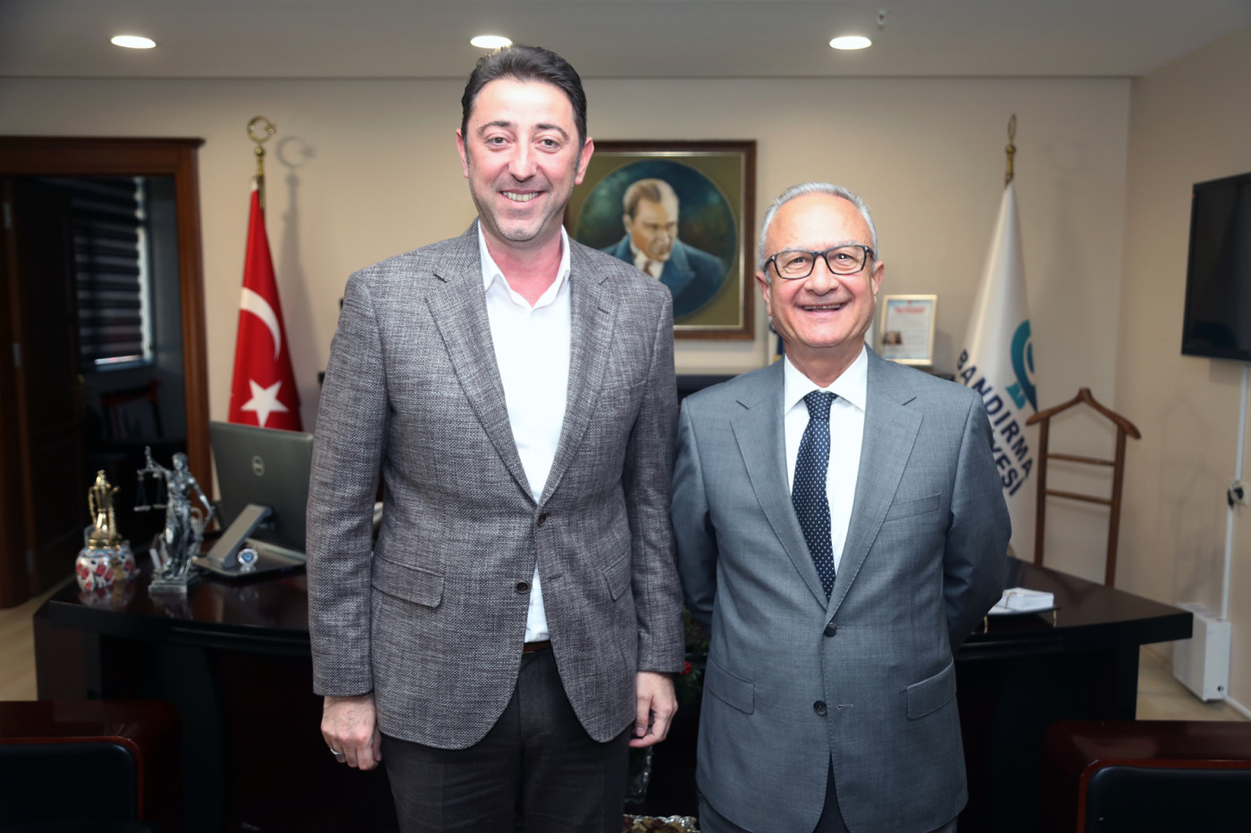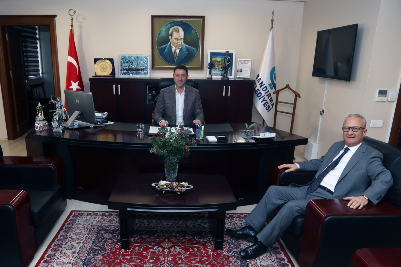 SEDAT PEKEL BELEDİYE BAŞKANI AV. TOLGA TOSUN’U ZİYARET ETTİ. DUAYEN BAŞKANDAN GENÇ BAŞKANA TAM NOT. Bandırma’da iki dönem Belediye Başkanlığı ve bir dönem de milletvekilliği yapmış olan, kentimiz siyasetinin önemli ismi duayen Başkan Sedat Pekel, Belediye Başkanı Av. Tolga Tosun’u makamında ziyaret etti. Nezaket amacıyla gerçekleşen ziyarette Sedat Pekel belediye çalışmaları ve devam eden projelerle ilgili görüşlerini aktarırken Başkan Tolga Tosun’un sekiz aylık dönemde yaptıkları ile ilgili değerlendirmelerde bulundu. Ziyaretiyle ilgili açıklama yapan Duayen Belediye Başkanı Sedat Pekel: “Başarılı çalışmaları ile övündüğüm ancak uzun zamandır yanına gelemediğim Bandırma’nın genç Belediye Başkanı değerli kardeşimiz Tolga Tosun’u makamında ziyaret etmekten büyük mutluluk duydum. Bu ziyarette, Sayın Başkanın geride kalan 8 aylık hizmet süresince kendisiyle ilgili halktan duyduğum güzel değerlendirmeleri ve görüşlerimi kendisiyle paylaşma fırsatı buldum.  Bu güzellikleri paylaşarak Tolga kardeşimizin moral motivasyonunu daha da yükseltmeye katkı sağlayacak son derece yararlı bir sohbet gerçekleştirdik” dedi. “Başarılarının daha da doruğa çıkacağı konusunda hiç kuşku duymuyorum” Sedat Pekel açıklamalarında şu ifadelere yer verdi: “Geçmişe bir baktığımda ben şunu görüyorum. Çok zor koşullarda seçim kazanmış ve her seçimden oylarını arttırarak çıkmış,  2 dönem de sağ partilerden belediyeyi devralma başarısını yakalamış bir siyasetçiyim. Bir ağabeyi olarak bendeki özelliklerin çok önemli bir bölümünün hatta biraz daha fazlasının Sayın Tolga Tosun’da olduğunu görmekten büyük gurur ve mutluluk duyuyorum Kendisi her şeyden önce çok güler yüzlü.  İnsan ilişkileri son derece sağlıklı ve gelişmiş. Hiç bir beklenti içine girmeden pozitif enerjisi ile halkla bütünleşme konusunda başarılı örnekler veriyor. Bunun yanında belediyede erozyona uğramış verimlilik ve üretkenlik anlayışının yeniden ön plana çıkarılması, çalışanların iş disiplini konusunda daha duyarlı hale getirilmesi de kurum içindeki önemli bir başarıdır. Belediyede israfın ortadan kaldırıldığını görmek ve buradan elde edinilen kazanımların halka hizmet için kullanılması bizi mutlu ediyor. Halktan da bunun takdir gören geri dönüşlerini görmek benim için çok önemli. Belediye Başkanımız Tolga Tosun’un başarılarının daha da doruğa çıkacağı konusunda hiç kuşku duymuyorum.” “Bandırma’nın malına mülküne sahip çıkılması, hakkının aranması ile ilgili güzel çalışmalar devam ediyor.” Belediye Başkanı Tolga Tosun’un gerçekleştirdiği çalışmalara da değinen Sedat Pekel: “Asfalt tesisi çalışamaz haldeyken olabilecek en kısa sürede tesisi hizmete alarak biraz gecikmeli de olsa asfalt üretimine başlandı. Halen de asfalt çalışması yapıyorlar. Bozuk olan yolların gerek asfalt gerek parke onarımı devam ediyor. Kültür sanat etkinlikleri tüm toplumla bütünleşerek devam ediyor. Büyükşehir Belediye Meclisine diğer belediye meclis üyesi arkadaşlar ile birlikte tam katılım sağlıyorlar. Su konusunda bazı şeyleri kamuoyuna anlatamamanın sıkıntısı yaşandı. Ama hep birlikte insanlara gerçekleri göstererek neyin, neden olduğunu, nasıl olduğunu, aslında zam gibi gösterilen eleştirilerin tam doğruyu yansıtmadığını anlatmaya çalıştık. Bandırma’nın malına mülküne sahip çıkılması, hakkının aranması ile ilgili güzel çalışmalar devam ediyor. Biz bu tür çalışmalarından dolayı büyük mutluluk duyuyoruz.” dedi. “Tolga Başkan hastaya gidiyor, cenazeye gidiyor, nişana gidiyor, düğüne gidiyor insanların en zor ve en güzel anlarında yanında oluyor. Yolun başında olmasına rağmen genç kardeşimizin çalışmalarını çok beğeniyor ve başarılı buluyorum.” Belediyeciliğin zor ve bir o kadar da kutsal bir görev olduğunu belirten duayen Başkan Pekel: “Belediyecilik çok farklı bir alan. Klasik bir sözdür, başımıza bir şey geldiğinde git sana belediye baksın derler. Bu boşuna söylenmiş bir söz değildir. Belediye Başkanı anadır, dosttur, arkadaştır, her şeydir. Belediyeye gelen insanlar çok mutlu gelmezler ya suyu akmıyordur, ya sokağında toz, çamur, çukur vardır, ya yeşil alanda bir problem yaşıyordur. O yüzden insanlar belediyeye gelirken duygu yoğun gelirler. Belediye Başkanının insanları rahatlatmak gibi bir görevi var. Sevgili Tolga kardeşimizde bu konuda da güzel örnekler var. Telefonla arıyorsun, eğer o an açamamışsa sonradan dönüş yapıyor. Bakıyorum hastaya gidiyor, cenazeye gidiyor, nişana gidiyor, düğüne gidiyor insanların en zor ve en güzel anlarında yanında oluyor. Sosyal yönleri çok güçlü. Bizim kendi dönemimizde yaptığımız gibi sağ elin verdiğini sol el görmesin anlayışı ile hareket ediyor. İhtiyacı olan insanlara mazeret üretmeden bulup buluşturup dokunuyor. Bunu yapmayı kendine özel görev edinmiş. O nedenle kendisine çok güveniyorum. Yolun başında olmasına rağmen genç kardeşimizin çalışmalarını çok beğeniyor ve başarılı buluyorum. Benimle ilgili bazı söylentiler duyuyorum. Benim danışmanlık beklentim olduğu dedikoduları geziyor. Edindiğim birikimlerimi, tecrübelerimi paylaşmayı insani bir görev olarak görüyorum. Ben şahıs olarak hiçbir beklenti içerisinde değilim. Tek beklentim Bandırma Belediyesi’nin hem temsilinde hem de hizmetinde fark yaratarak açık ara birinci olmasıdır. Kendisinden çok umutluyuz” dedi. Duayen Başkan Sedat Pekel’e nazik ziyaretleri için teşekkür ederek sözlerine başlayan Belediye Başkanı Av. Tolga Tosun: “Bugün burada Belediye Başkanlığı görevini yapıyorsak kendisinin bize vermiş olduğu destek ve güve
