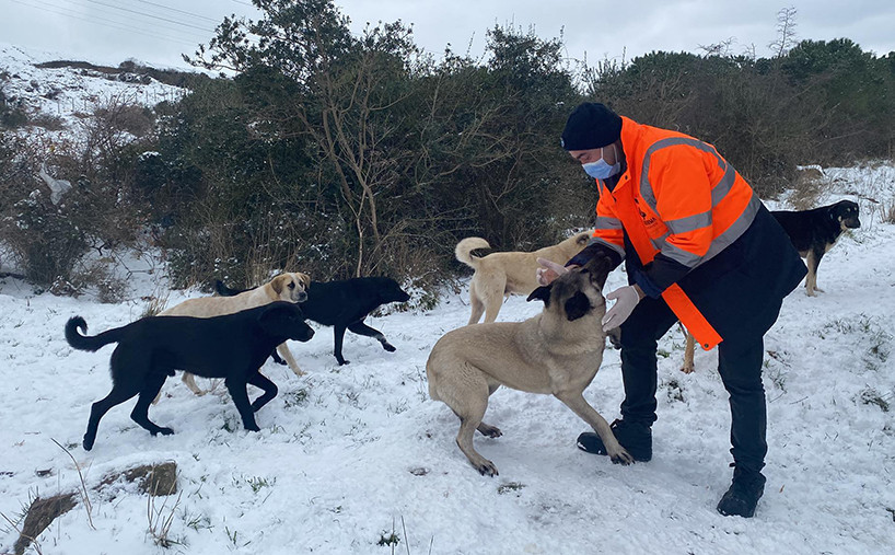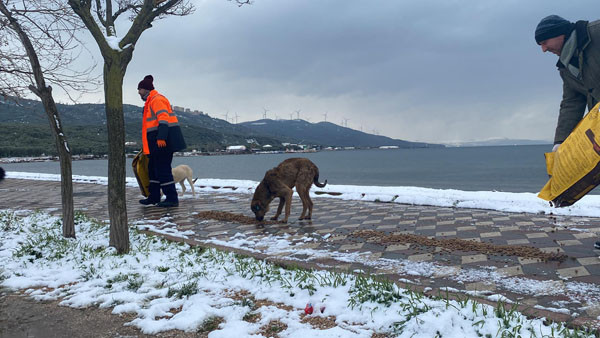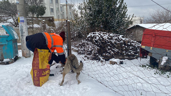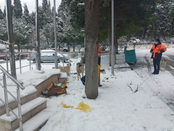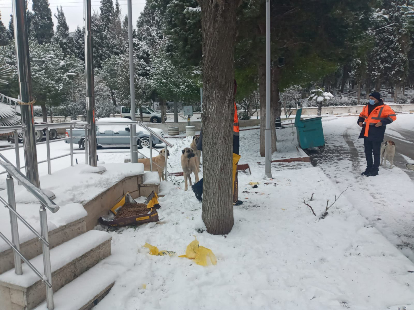 SOKAKLARDA YAŞAYAN DOSTLARIMIZI UNUTMADIK Soğuk hava koşullarından, kar yağışından etkilenen sokaklarda yaşayan dostlarımızı unutmadık. Hava koşulları dolayısıyla yiyecek bulamayan sokaklarda yaşayan dostlarımızın ihtiyaçlarını karşılamak için kentimizin öncelikle belirlenen noktalarına mama bıraktık. Şehir içinde ve dışındaki besleme noktalarına günlük periyotlarla bol miktarda bırakılıyor. Ekiplerimiz tarafından düzenli şekilde takipleri yapılan mama dağıtımının özellikle bugünlerde ne kadar önemli olduğunun bilinciyle çalışmalarımızı yürütüyoruz. Sokaklarda yaşayan dostlarımızın bu soğuk kış günlerini atlatabilmeleri için ekiplerimizin mama dağıtım çalışmaları kar yağışı süresince rutin olarak devam edecek.
