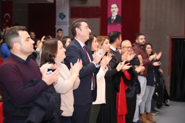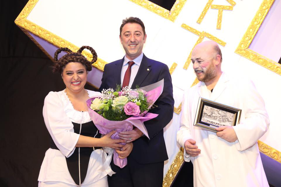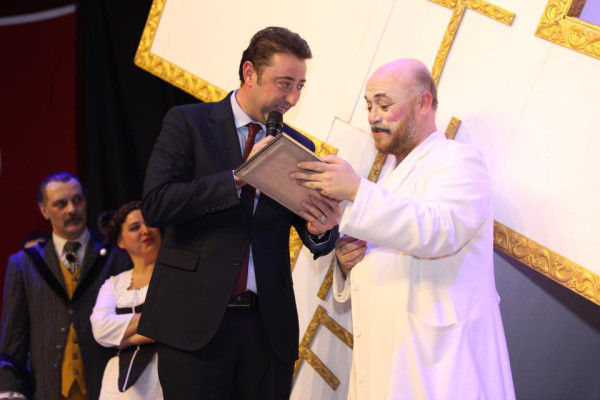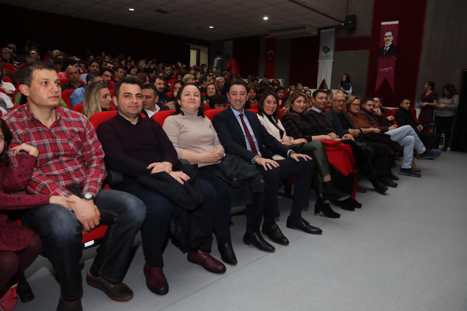 “TARTUFFE” ÖZGÜN YORUMU İLE BANDIRMA SEYİRCİSİNDEN TAM NOT ALDI Bandırma Belediyesi Kültür Etkinlikleri kapsamında düzenlenen "Tartuffe" isimli tiyatro oyunu Bandırmalı tiyatro severler ile Barış Manço Kültür Merkezinde buluştu. Moliere’in ölümsüz eseri Tartuffe, Emrah Eren’in günümüz yorumuyla sahnelendi. Tartuffe oyunu aynı zamanda sahne tasarımı, kostüm ve müzikleri ile eğlenceli bir oyun olmanın yanında, güçlü mesajları ile dikkat çekti. Müzikli komedi oyunu “Tartuffe” oyun bitiminde Bandırmalı tiyatroseverlerin yoğun alkışı ile izleyicilerden tam not almayı başardı. Tiyatro sonunda Belediye Başkanı Av. Tolga Tosun, oyunculara böylesine eğlenceli ve anlamlı bir oyunu Bandırma’da sahneledikleri için teşekkür ederek, çiçek ve plaket takdim etti. Tiyatroyu Bandırma Garnizon Komutanı Hava Pilot Tuğgeneral Oğuz Okuyucu, Bandırma Jandarma Komutanı Yüzbaşı Mahir Mavi, Bandırma Emniyet Müdürü Soner Duran, önceki dönem Belediye Başkanı Sedat Pekel ve Belediye Meclis üyeleri izledi. "DÜĞÜM AŞKI" Belediye Başkanı Av. Tolga Tosun, Halime Çalışkaner ve kursiyerlerinin Barış Manço Kültür Merkezi Melih Çınar Sergi Salonunda açmış olduğu "Düğüm Aşkı" isimli Kazaziye Takı Sergisini ziyaret etti.