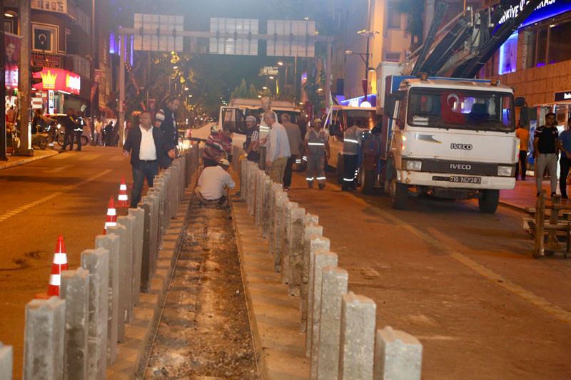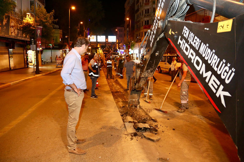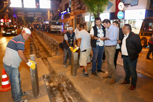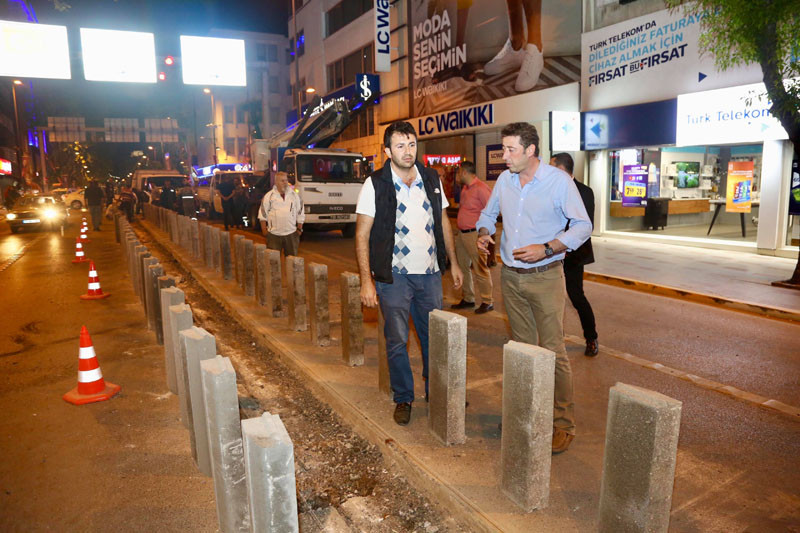 VATANDAŞLARIMIZDAN GELEN TALEPLER DOĞRULTUSUNDA İNÖNÜ CADDESİ REFÜJ YENİLEME ÇALIŞMALARI DEVAM EDİYOR   Belediye Başkanımız Av. Tolga Tosun, Belediye Meclis Üyemiz Cihan Yılmaz ile birlikte İnönü Caddesinde gerçekleştirilen refüj düzenleme çalışmalarını yerinde inceledi.   Gerçekleştirilen refüj yenileme çalışmaları ile ilgili açıklama yapan Belediye Başkanı Av. Tolga Tosun: “Şehit Süleyman Bey caddesindeki esnafımızın ve vatandaşlarımızdan gelen yoğun talep doğrultusunda İnönü caddesini yeniden düzenleme kararı aldık. İnönü caddesi refüj yenileme çalışmalarımızı esnafımızı rahatsız etmemek ve trafikte sorun yaratmamak adına gece gerçekleştiriyoruz. Gerçekleştirdiğimiz düzenleme doğrultusunda tüm vatandaşlarımızın sadece yaya geçitlerinden geçebilecekleri şekilde ayarlamalar yapıyor yaya geçitleri dışındaki refüj bölümlerine yüksek bitkilerin ekimlerini gerçekleştiriyoruz. Ayrıca yaya geçitlerine o bölgede bulunan trafik ışıkları ile uyumlu yaya trafik ışıkları da koymayı planlıyoruz” dedi.