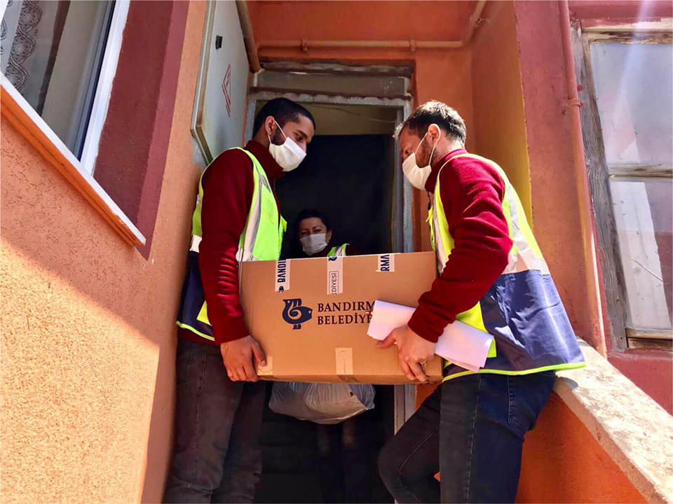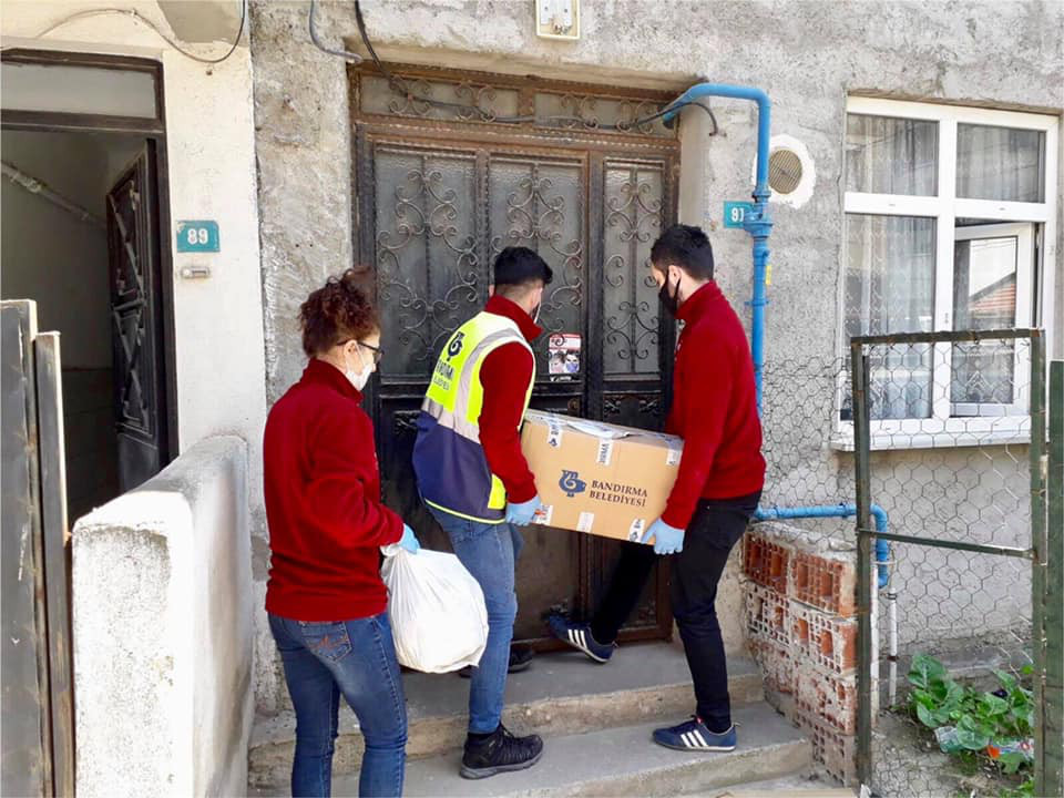 Bandırma Kaymakamlığı, Bandırma Belediyesi, Bandırma Ticaret Odası, Bandırma Ticaret Borsası, Türk Kızılay’ı, Sosyal Yardımlaşma ve Dayanışma Vakfı, hayırsever vatandaşlar ve iş insanlarımızın katılımıyla oluşan Vefa Ekibimizin salgının ekonomik ve sosyal hayatta neden olduğu olumsuzluğu gidermek için kentimizde ihtiyaç sahibi olan vatandaşlarımıza erzak kolilerinin dağıtımını yaparak ailelerimize destek olmaya devam ediyor. Kurumlarımıza başvuran ve kurumların yaptığı incelemeye göre VEFA Ekibimiz haftaiçi ve haftasonu destek kolilerinin dağıtımını sürdürüyor.