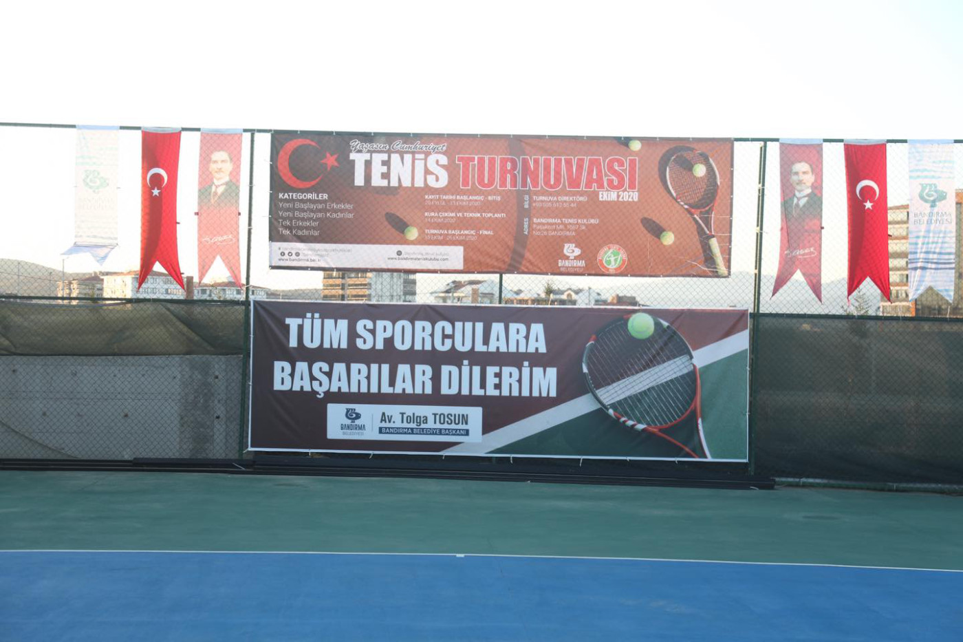 YAŞASIN CUMHURİYET TENİS TURNUVASI BAŞLADI Bandırma Belediyesi ve Bandırma Tenis Kulübünün ortaklaşa düzenlediği “Yaşasın Cumhuriyet Tenis Turnuvası” Belediye Başkanı Av. Tolga Tosun’un ilk vuruşu ile başladı. 4 ayrı kategoride toplam 84 sporcunun yer aldığı turnuva 26 Ekim Pazartesi günü final müsabakaları ve ödül töreni ile sona erecek. Turnuva açılışında konuşan Belediye Başkanı Av. Tolga Tosun: “Bandırma Belediyesi olarak ilçemizdeki spora destek sağlamak amacıyla pandemi döneminde fiziki mesafeye uygun olan Tenis turnuvamızın açılışını gerçekleştiriyoruz. Turnuva Bandırmamızdaki tenisseverlere ve sporculara hayırlı olsun. Turnuvadaki tüm sporculara başarılar diliyorum” dedi.