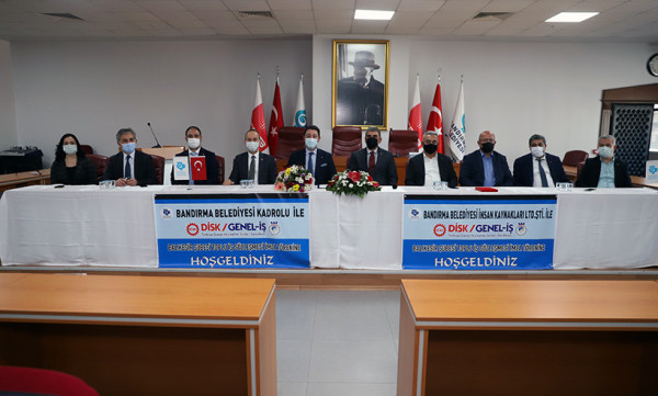 Bandırma Belediyesi ile Genel-İş Sendikası arasında Belediye Başkanı Av. Tolga Tosun ve Genel –İş Sendikası Genel Başkanı Remzi Çalışkan’ın katılımı ile Belediye Meclis Salonunda t