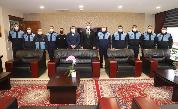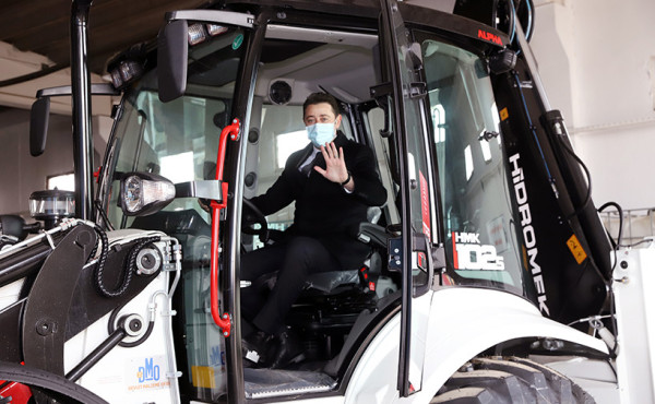 Belediye Başkanı Av. Tolga Tosun Türkiye Belediyeler Birliği tarafından Bandırma Belediyesine hibe edilen çok amaçlı kepçeyi Belediye şantiyesinde inceledi.