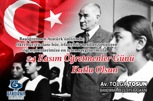 24 Kasım Öğretmenler Günü Bandırma Cumhuriyet Meydanında yapılan törenle kutlandı. Belediye Başkan’ı Av. Tolga Tosun tören başlamadan önce tören alanında bulunan öğretmenlere gül t