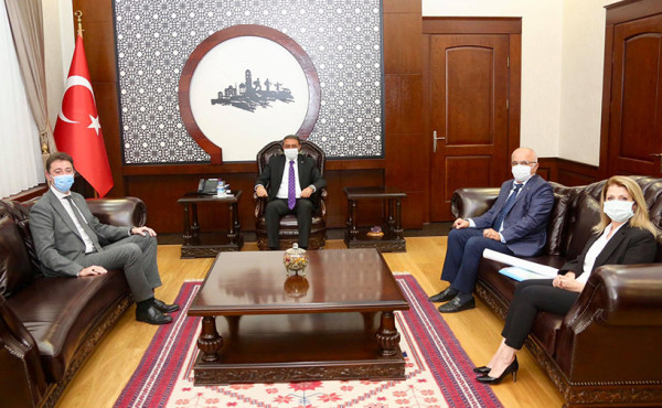 Belediye Başkanı Av. Tolga Tosun, İmar Komisyonu Başkanı Meclis Üyesi Yalçın Cömert, İmar ve Şehircilik Müdürü Filiz Kayaoğlu ile birlikte Balıkesir Valisi Hasan Şıldak’ı makamında